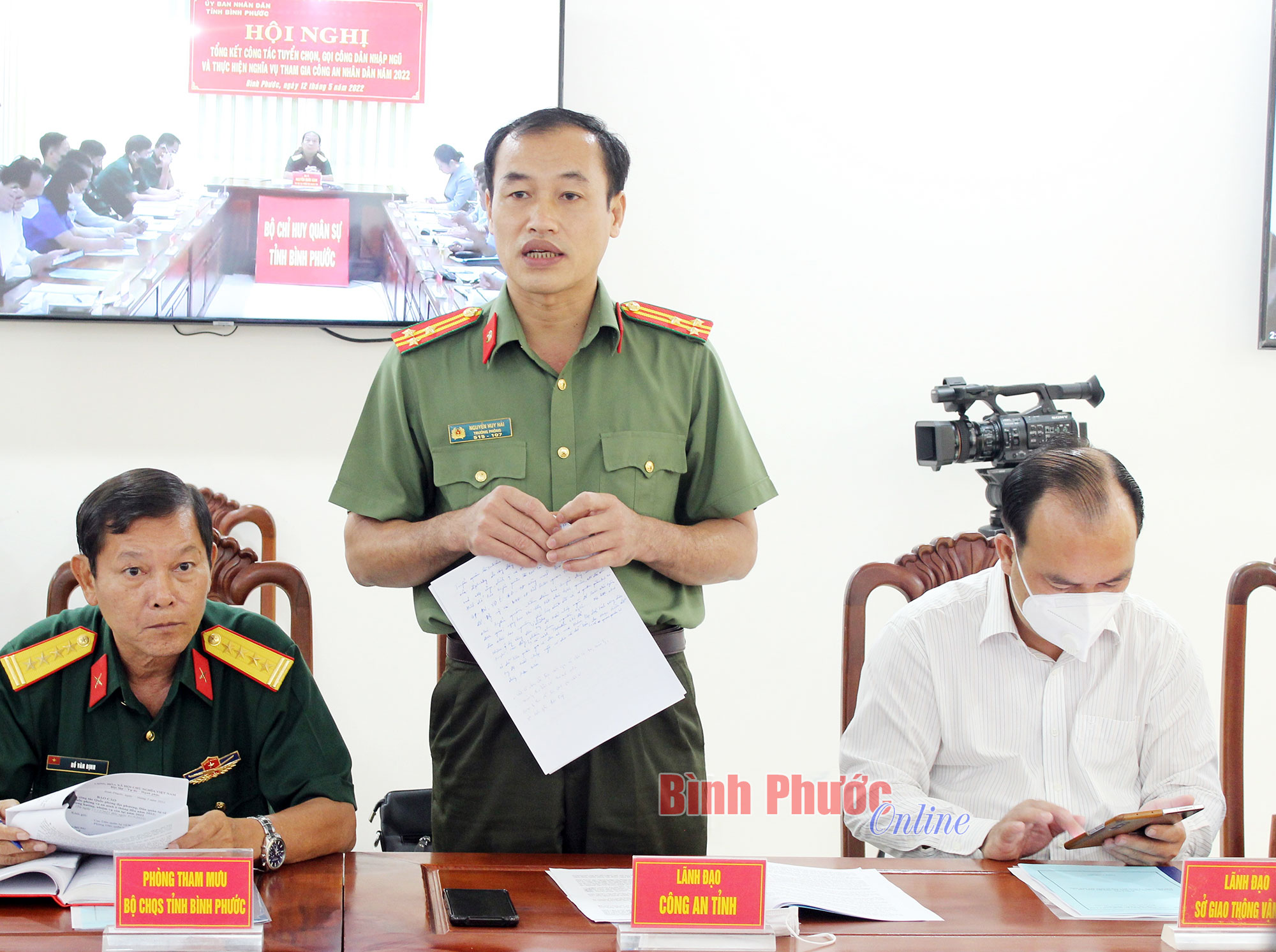 Sau khi nghe ý kiến của các đại biểu dự hội nghị, Đại tá Nguyễn Quốc Bình, Ủy viên Ban Thường vụ Tỉnh ủy, Chỉ huy trưởng Bộ CHQS tỉnh, Phó chủ tịch Thường trực Hội đồng Nghĩa vụ quân sự tỉnh đề nghị, để công tác tuyển chọn, gọi công dân nhập ngũ và thực hiện nghĩa vụ tham gia công an nhân dân năm 2023 đạt kết quả cao hơn, các huyện, thị, thành phố cần thực hiện tốt công tác chuẩn bị nguồn, thực hiện đúng các bước trong tuyển chọn, gọi công dân nhập ngũ. Đồng thời, tập trung máy móc, trang thiết bị y tế để đảm bảo công tác khám sức khỏe. Liên quan đến chính sách hậu phương quân đội, cần có định hướng nghề nghiệp cho quân nhân chuẩn bị xuất ngũ.