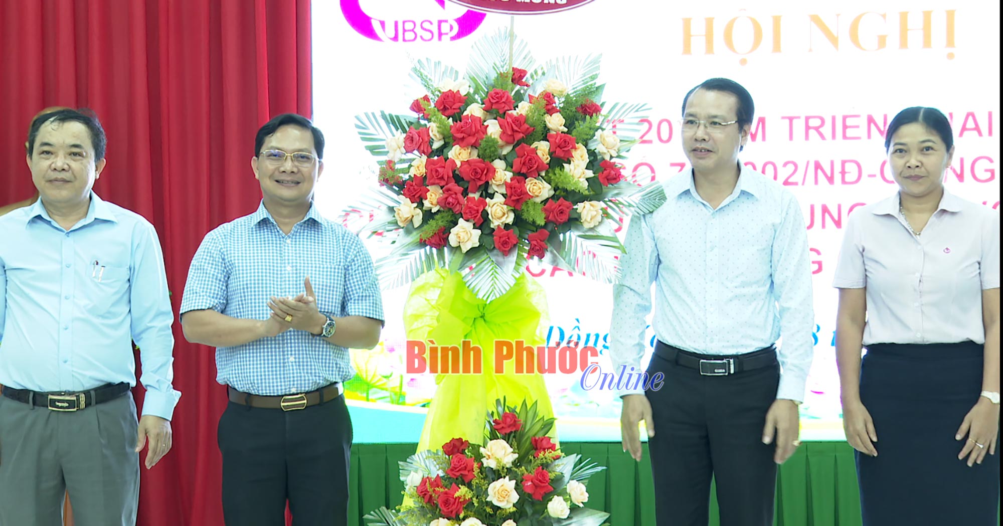 Ủy viên Ban Thường vụ Tỉnh ủy, Bí thư Thành ủy Đồng Xoài Hà Anh Dũng tặng hoa chúc mừng hội nghị