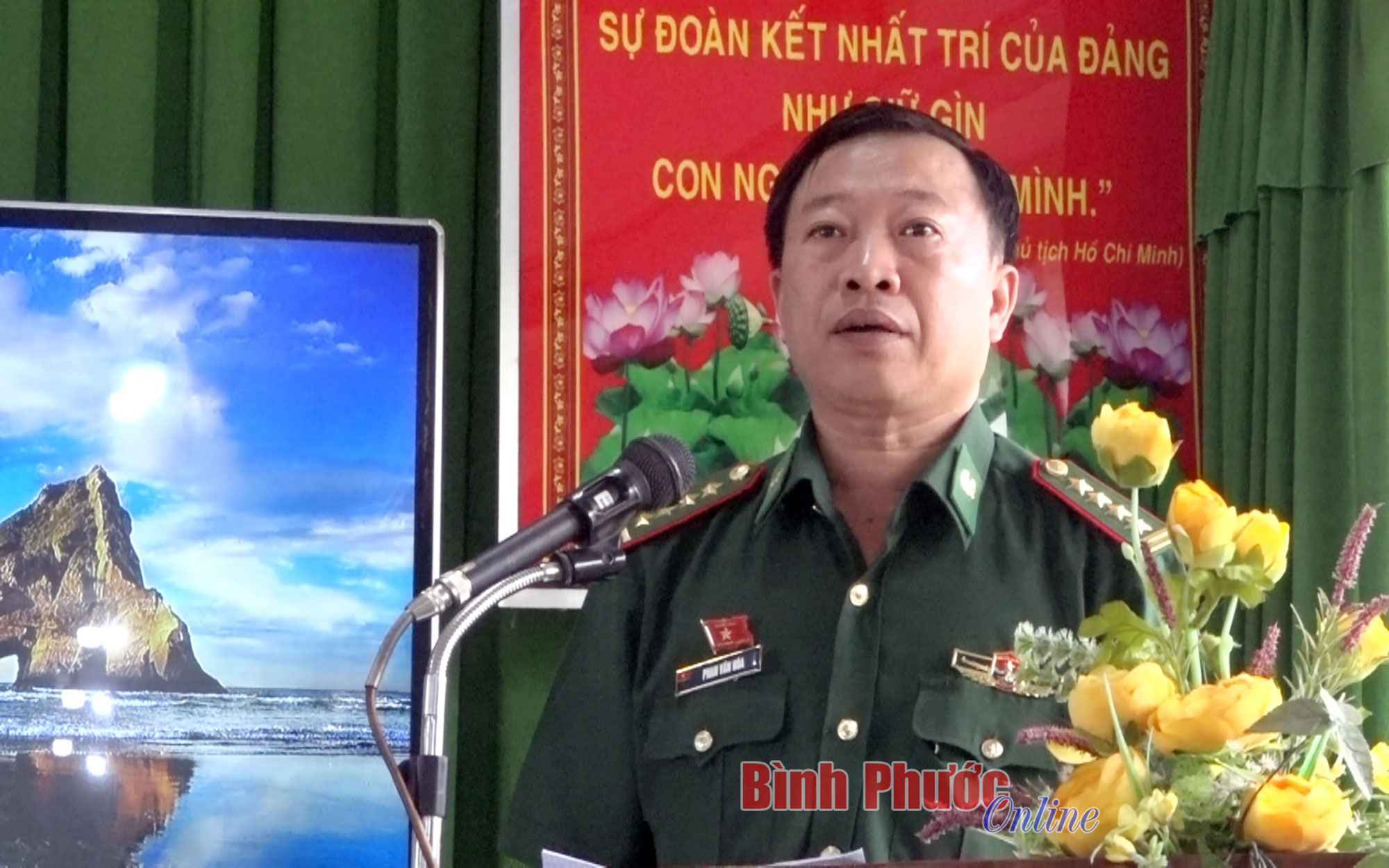 Đại tá Phan Văn Hóa, Phó Chỉ huy trưởng Bộ chỉ huy Bộ đội biên phòng tỉnh thông báo kết quả kỳ họp thứ 6, HĐND tỉnh khóa X, nhiệm kỳ 2021-2026 đến với cử tri xã Thiện Hưng, huyện Bù Đốp