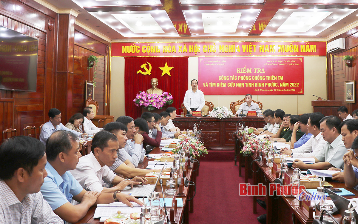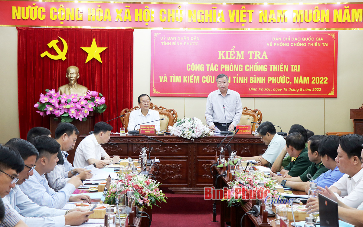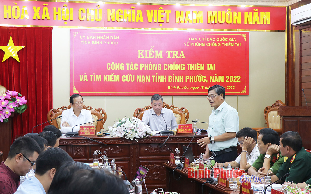 Trưởng đoàn công tác Phạm Ngọc Thưởng ghi nhận các đề xuất, kiến nghị của các thành viên Ban chỉ đạo phòng chống thiên tai và tìm kiếm cứu nạn tỉnh Bình Phước để tham mưu Ban chỉ đạo Quốc gia xem xét kịp thời tháo gỡ những khó khăn của địa phương.