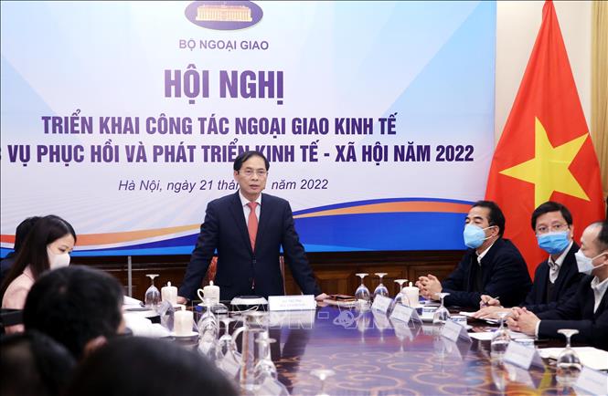 Bộ trưởng Ngoại giao Bùi Thanh Sơn tại Hội nghị triển khai công tác ngoại giao kinh tế năm 2022. Ảnh tư liệu: Lâm Khánh/TTXVN