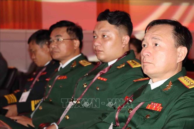 Đại tá Nguyễn Vân Giang, Phó Cục trưởng Cục Quân y (thứ nhất, bìa phải) cùng các thành viên đoàn Việt Nam tham dự hội nghị. Ảnh: Hương Giang - P/V TTXVN tại Bỉ