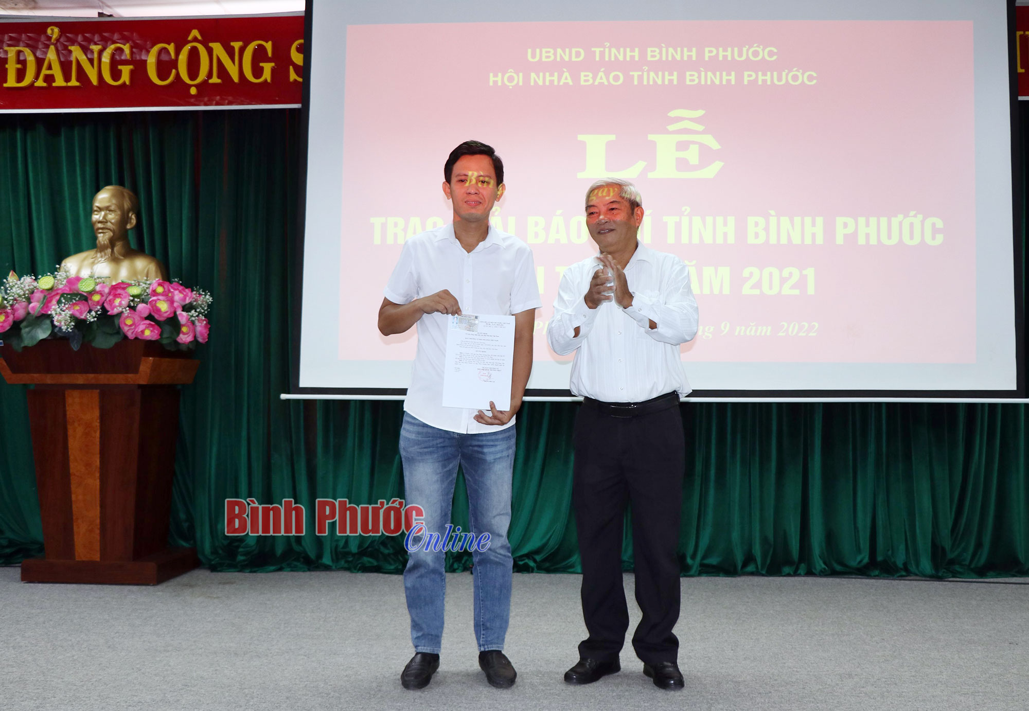 Tại buổi lễ, được sự ủy quyền của Hội đồng giải Báo chí quốc gia, Chủ tịch Hội Nhà báo tỉnh Đoàn Như Viên đã trao giấy chứng nhận và kỷ niệm chương cho nhóm tác giả: Nguyễn Thị Minh Nhâm, Phan Tùng Sơn, Hoàng Ngọc Thu, Đỗ Thị Luận của Đài Phát thanh - Truyền hình và Báo Bình Phước đã đoạt giải khuyến khích giải Báo chí quốc gia theo Quyết định số 06/QĐ-HĐGBCQG ngày 10-6-2022 với tác phẩm loạt 5 bài: “Ổn định để phát triển - phát triển để ổn định”.