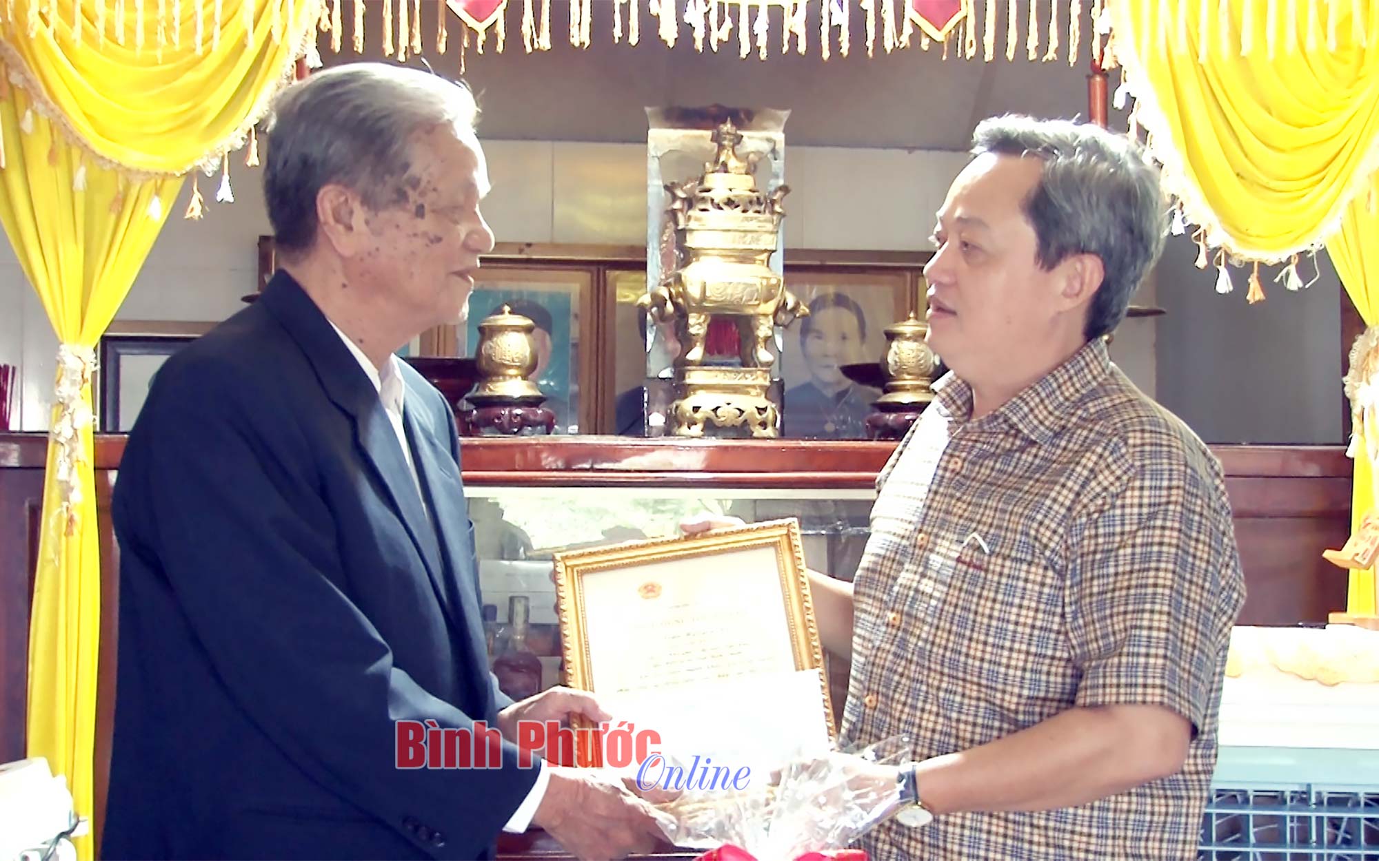 Trưởng ban Nội chính Tỉnh ủy Nguyễn Minh Hợi tặng quà cụ Trần Nguyên Hạ, khu phố 5, thị trấn Tân Khai