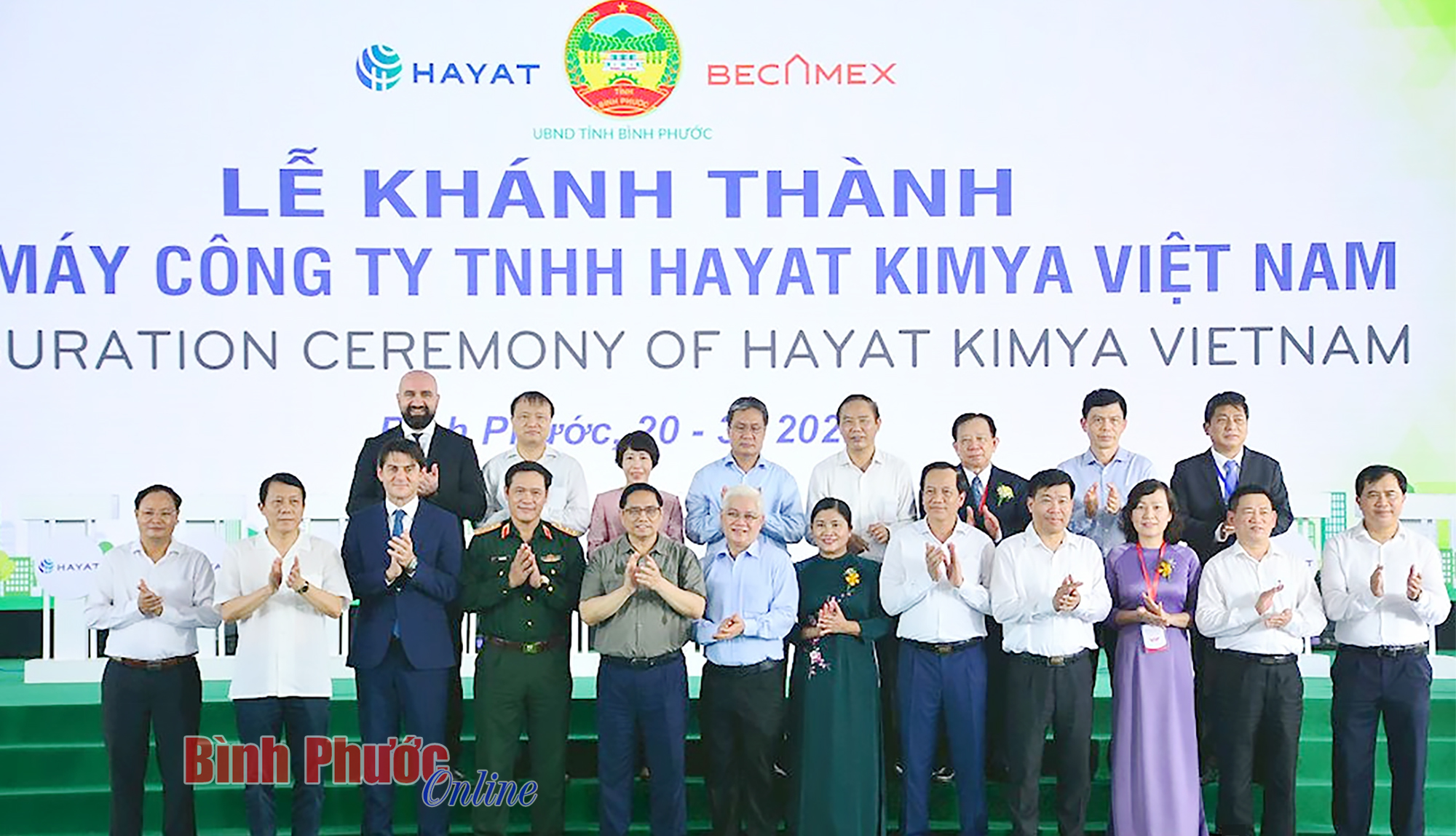 Ủy viên Bộ Chính trị, Thủ tướng Chính phủ Phạm Minh Chính và lãnh đạo các bộ, ban, ngành Trung ương, địa phương, cộng đồng doanh nghiệp dự lễ khánh thành Nhà máy Hayat Kimya Việt Nam (huyện Chơn Thành) ngày 20-3-2022
