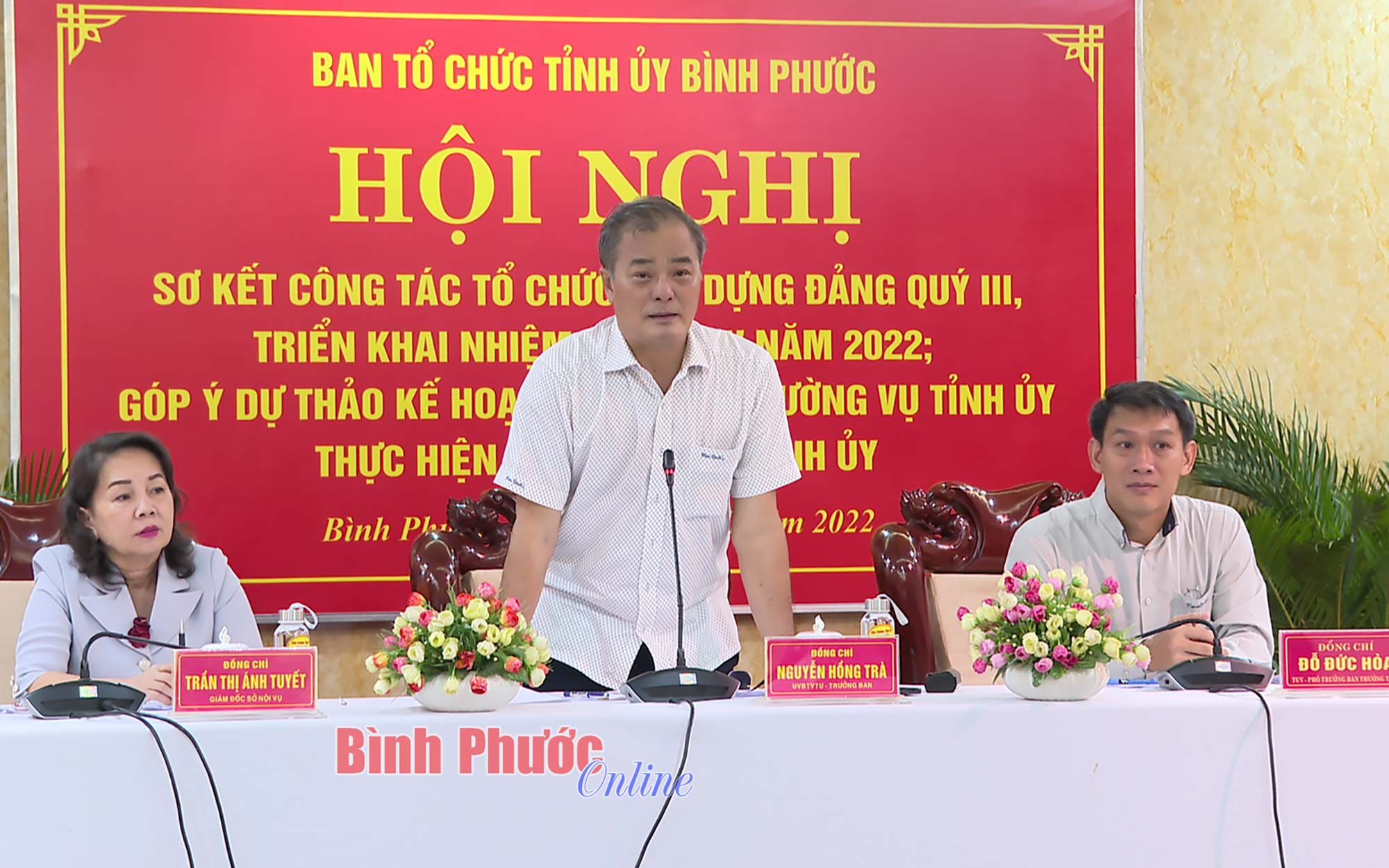 Trong quý III, toàn ngành tổ chức xây dựng Đảng của tỉnh Bình Phước tiếp tục bám sát các chương trình, nghị quyết, kết luận Trung ương, của Tỉnh ủy, đã triển khai thực hiện tốt các nhiệm vụ trọng tâm và thường xuyên. Trong đó, nổi bật là việc tham mưu cụ thể hóa và triển khai thực hiện Nghị quyết Đại hội XIII của Đảng, Nghị quyết Đại hội XI Đảng bộ tỉnh và nghị quyết các cấp. Kịp thời quán triệt, triển khai văn bản của Trung ương, Tỉnh ủy về công tác xây dựng Đảng. Kiện toàn, sắp xếp tổ chức bộ máy, quản lý biên chế trong hệ thống chính trị toàn tỉnh. Nâng cao chất lượng, cơ cấu lại đội ngũ cán bộ, công chức, viên chức đạt nhiều kết quả quan trọng.