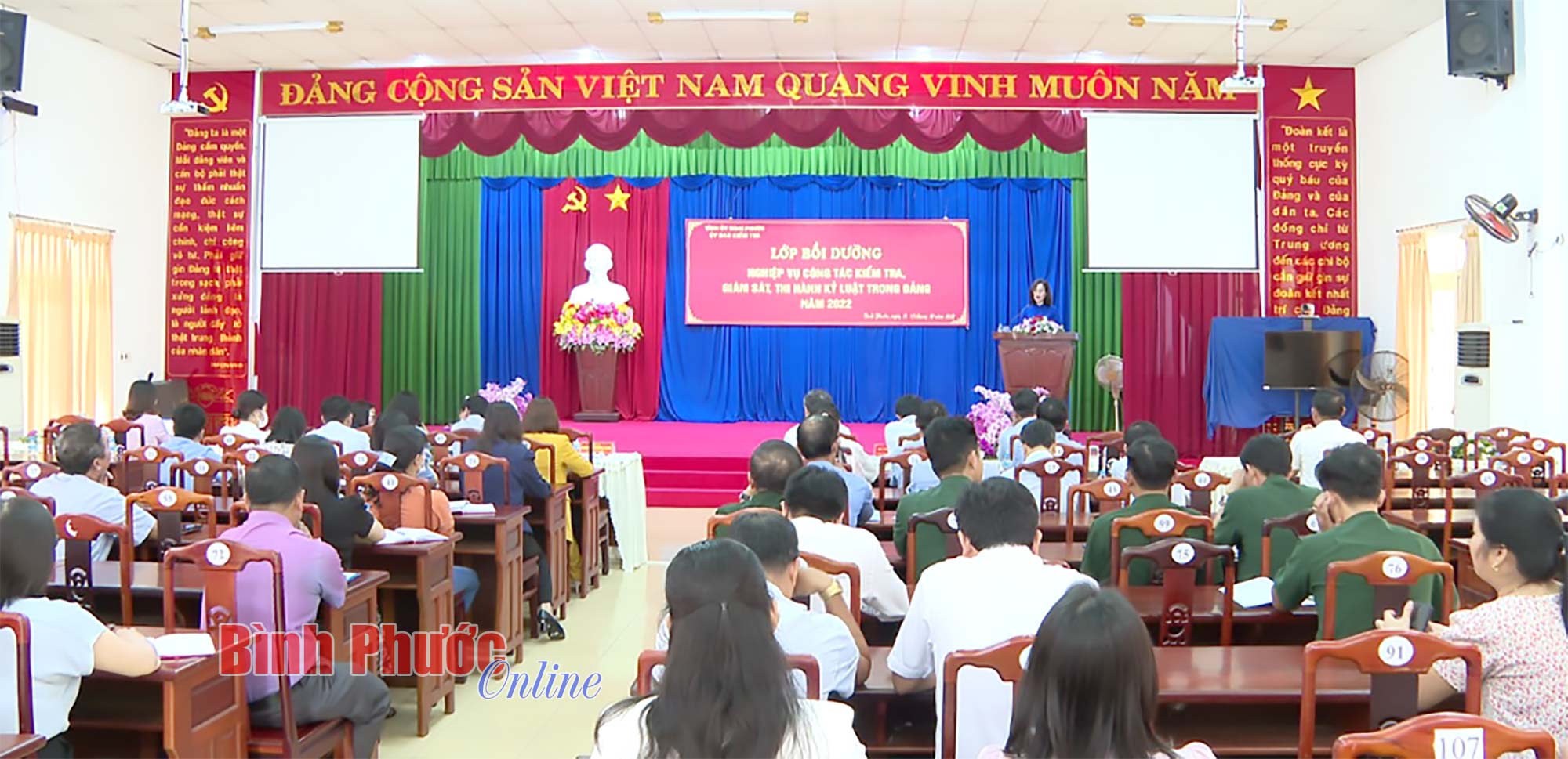 Các đại biểu tham dự lớp tập huấn nghiệp vụ kiểm tra, giám sát và thi hành kỷ luật trong Đảng năm 2022, do Ủy ban Kiểm tra Tỉnh ủy Bình Phước tổ chức trong 2 ngày 13, 14-10