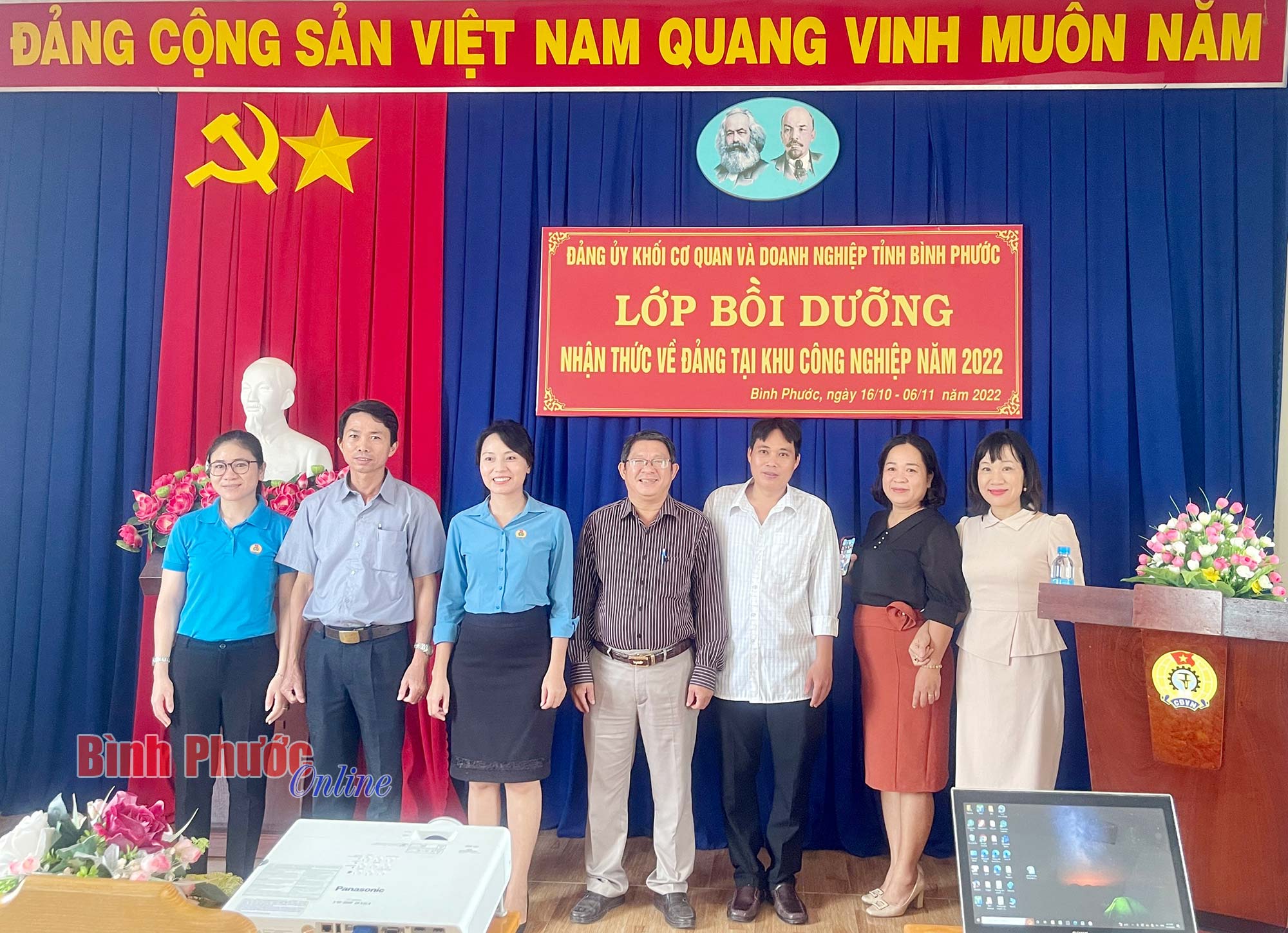 Trong thời gian từ ngày 16-10 đến 6-11-2022 (học vào các ngày Chủ nhật), 40 học viên là công nhân, người lao động ưu tú đang làm việc các khu công nghiệp trên địa bàn Khu công nghiệp Đồng Xoài, Đồng Phú được học tập 5 chuyên đề trong tài liệu bồi dưỡng nhận thức về Đảng do Ban Tuyên giáo Trung ương biên soạn. Bên cạnh đó, các học viên cũng được học tập lịch sử Đảng bộ tỉnh Bình Phước.