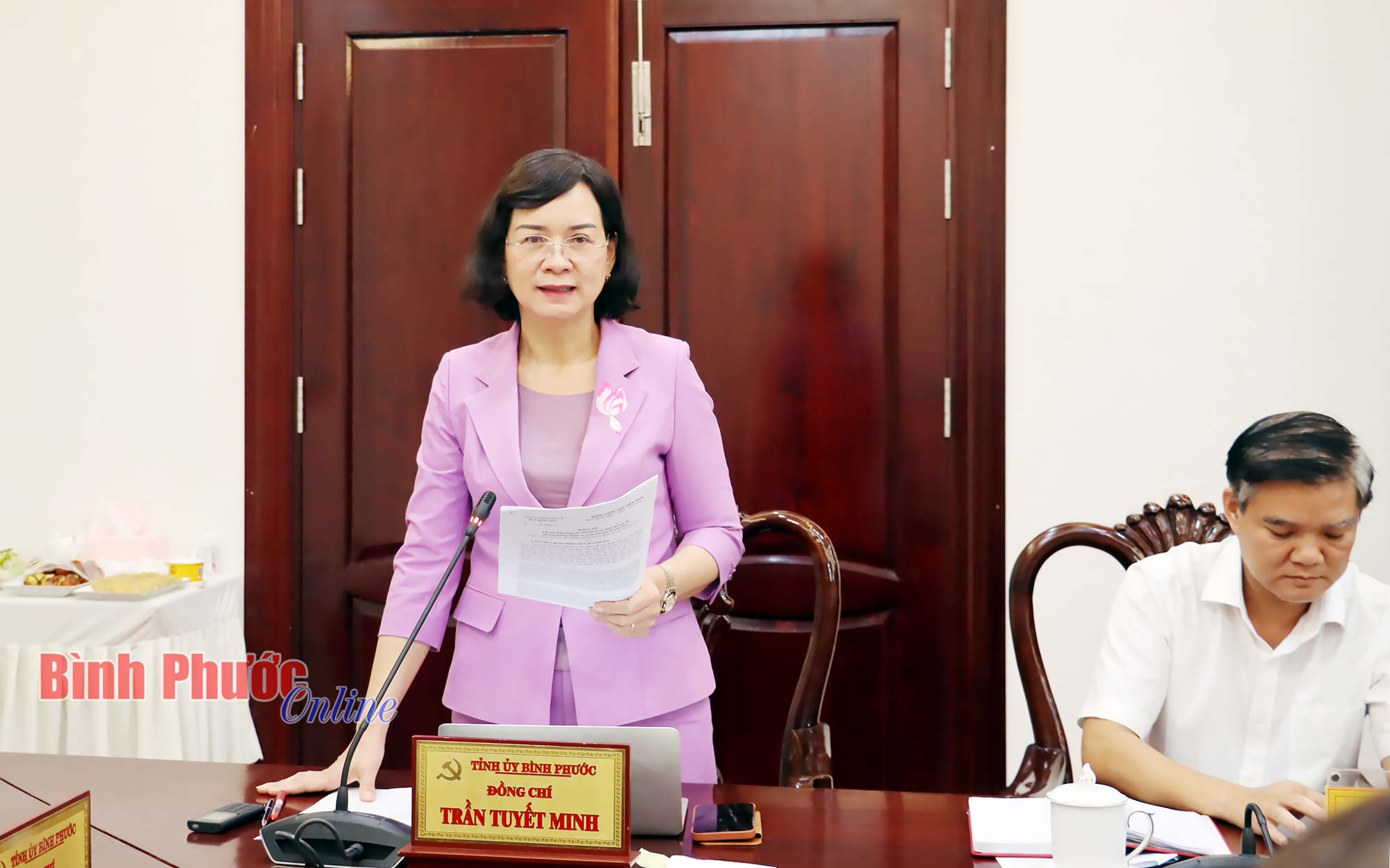 Ủy viên Ban Thường vụ Tỉnh ủy, Phó Chủ tịch UBND tỉnh Trần Tuyết Minh phát biểu các vấn đề liên quan đến nhiệm vụ cuối năm 2022 của UBND tỉnh