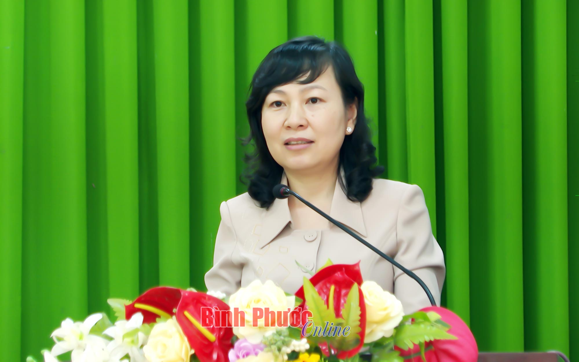 Phó Bí thư Thường trực Tỉnh ủy, Chủ tịch HĐND tỉnh Huỳnh Thị Hằng phát biểu tại buổi tiếp xúc với cử tri
