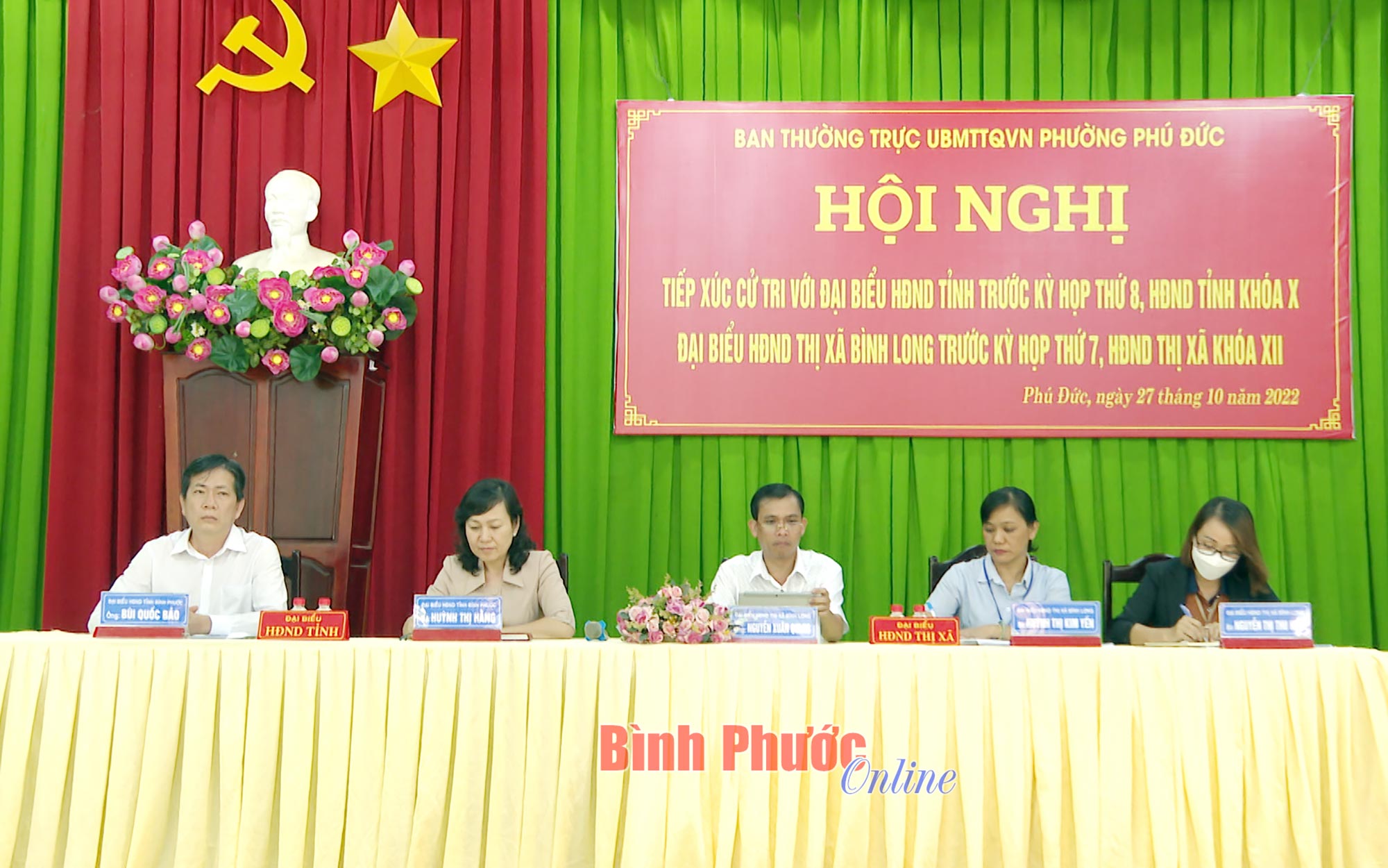Tại buổi tiếp xúc, cử tri đã có các ý kiến, kiến nghị đến đại biểu HĐND 2 cấp về tình trạng xe lớn, quá tải lưu thông trên 2 tuyến Nguyễn Du và Đoàn Thị Điểm của thị xã làm đường hư hỏng nặng; cần có thêm đèn tín hiệu giao thông trên đoạn đường Nguyễn Du; một số cử tri đề nghị bổ sung chức danh phó khu phố...