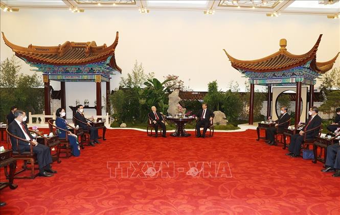 Tổng Bí thư Nguyễn Phú Trọng và Tổng Bí thư, Chủ tịch Trung Quốc Tập Cận Bình thưởng thức trà