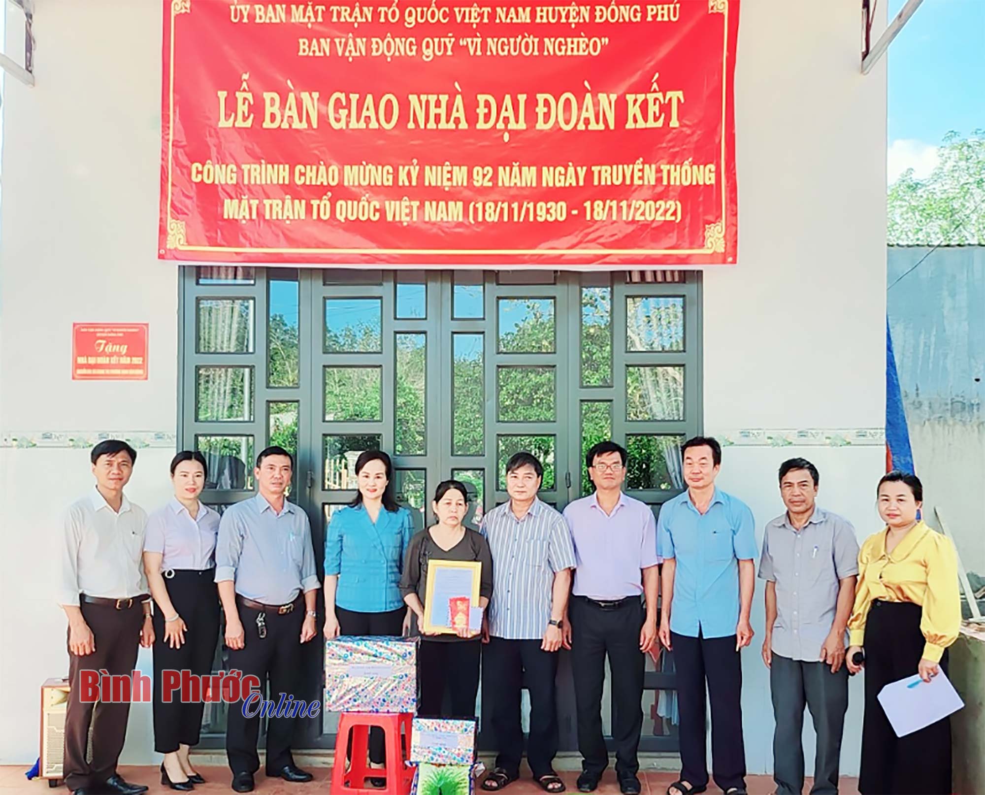 Ủy viên Ban Thường vụ, Chủ nhiệm Ủy ban Kiểm tra Tỉnh ủy Giang Thị Phương Hạnh cùng lãnh đạo huyện Đồng Phú trao tặng nhà cho bà Hà Thị Mai Lan