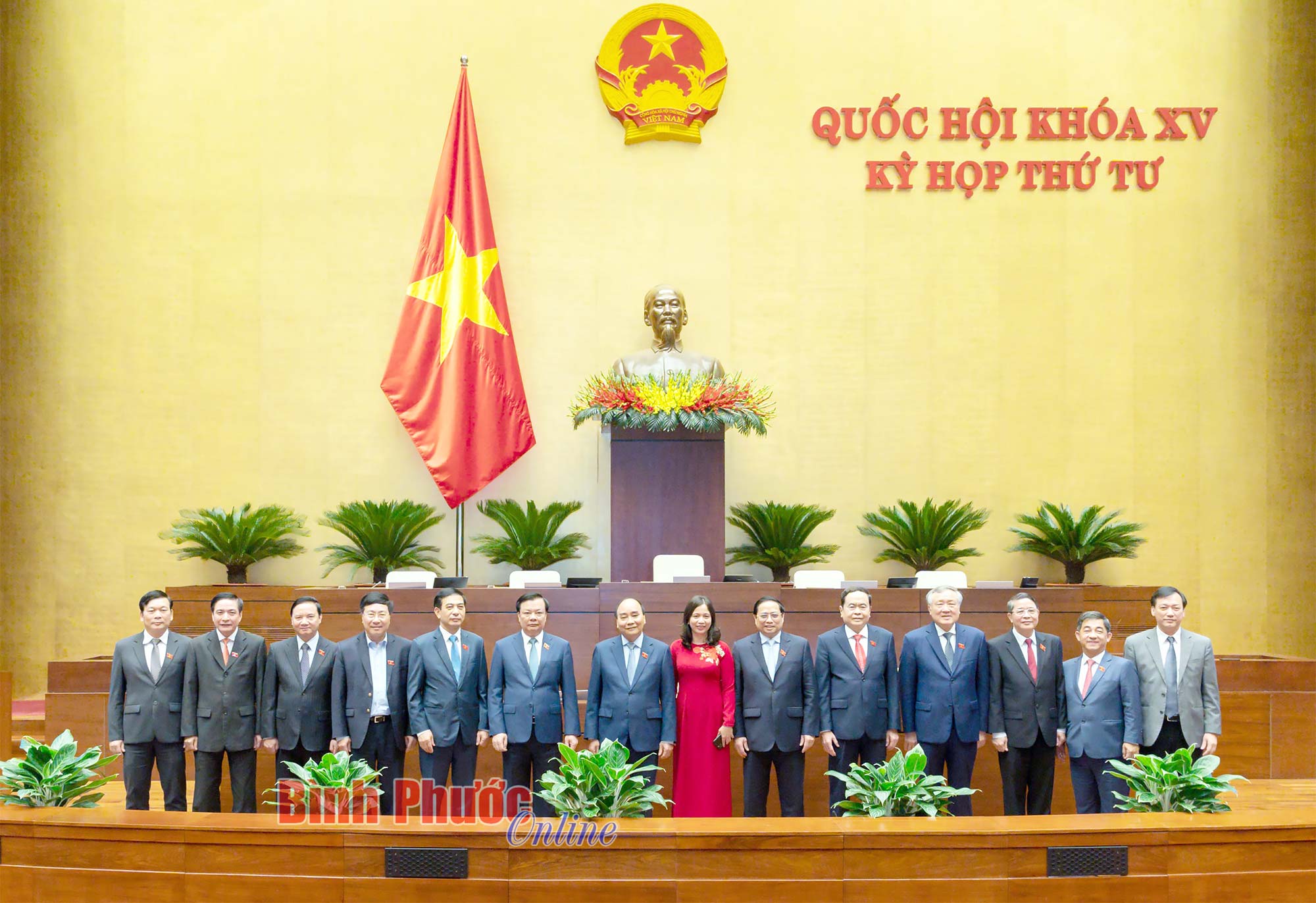 Đoàn đại biểu Quốc hội tỉnh Bình Phước chụp hình cùng lãnh đạo Đảng, Nhà nước, Ủy ban MTTQ Việt Nam tại kỳ họp