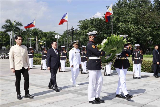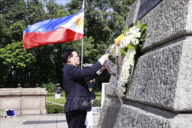 Chủ tịch Quốc hội Vương Đình Huệ đặt vòng hoa tại tượng đài Rizal.
