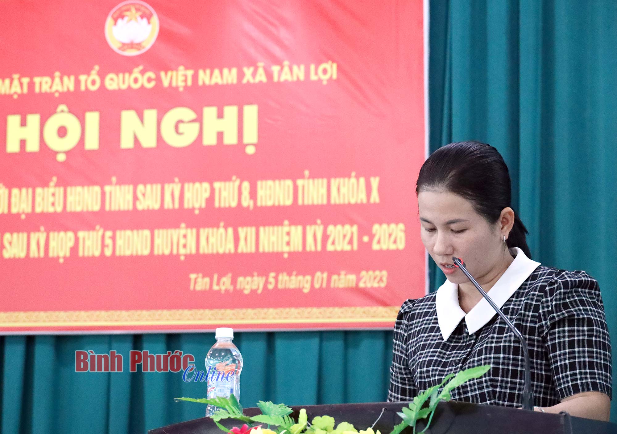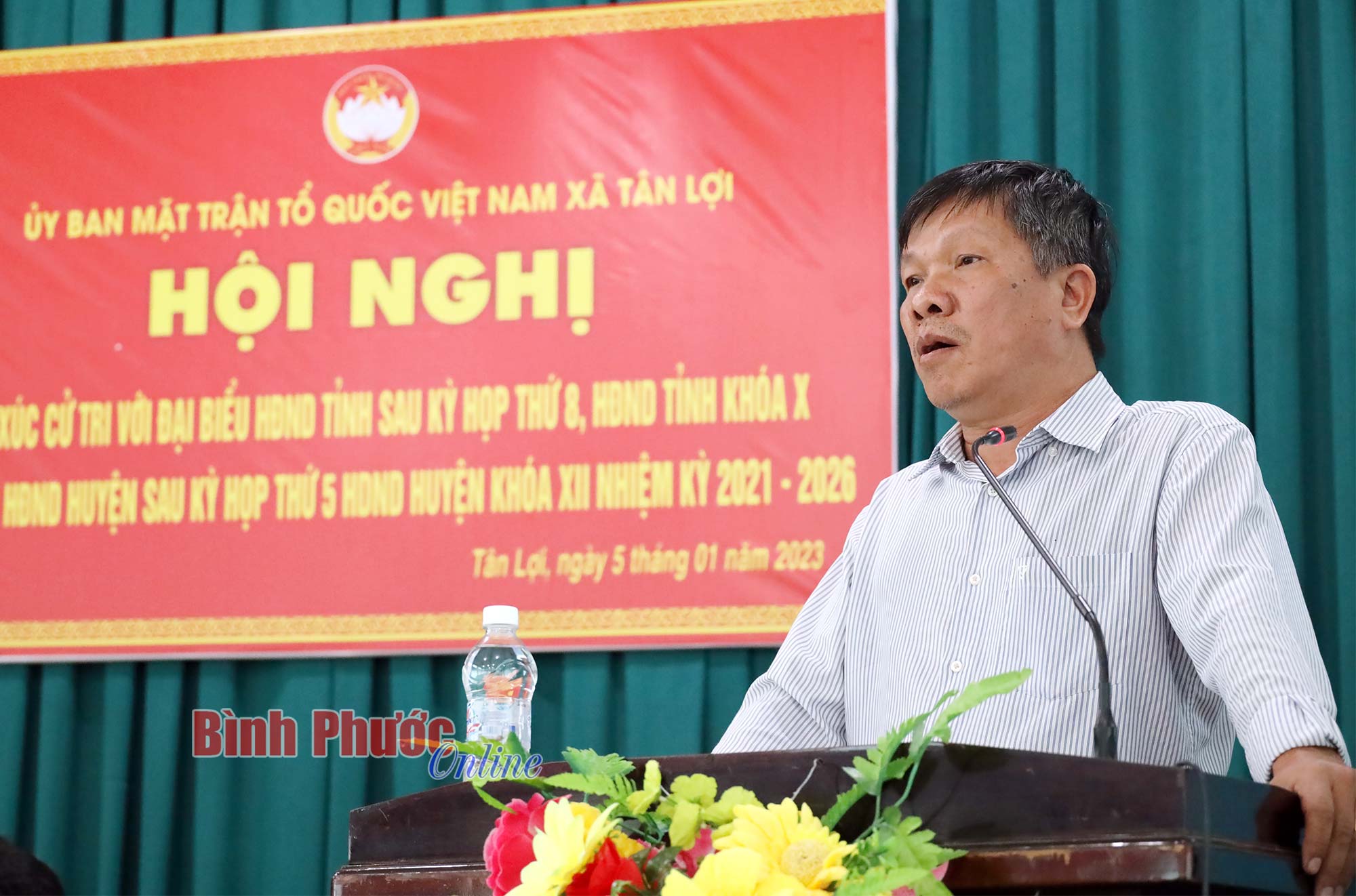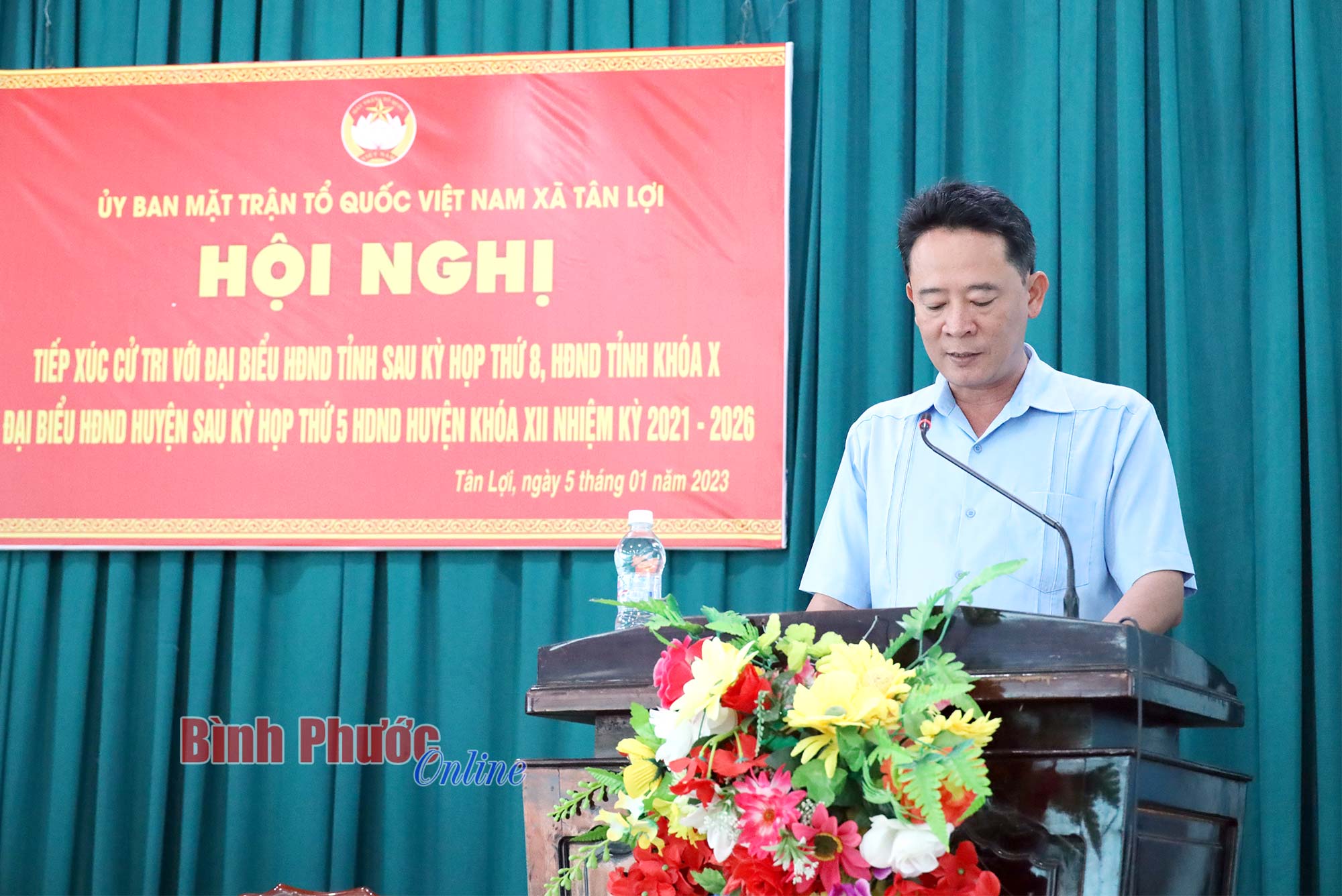 * Chiều cùng ngày, các đại biểu HĐND tỉnh: Huỳnh Anh Minh, Phó Chủ tịch UBND tỉnh; Lý Trọng Nhân, Trưởng ban Dân tộc tỉnh tiếp tục tiếp xúc với cử tri xã Tân Lợi và Tân Hưng, huyện Hớn Quản.