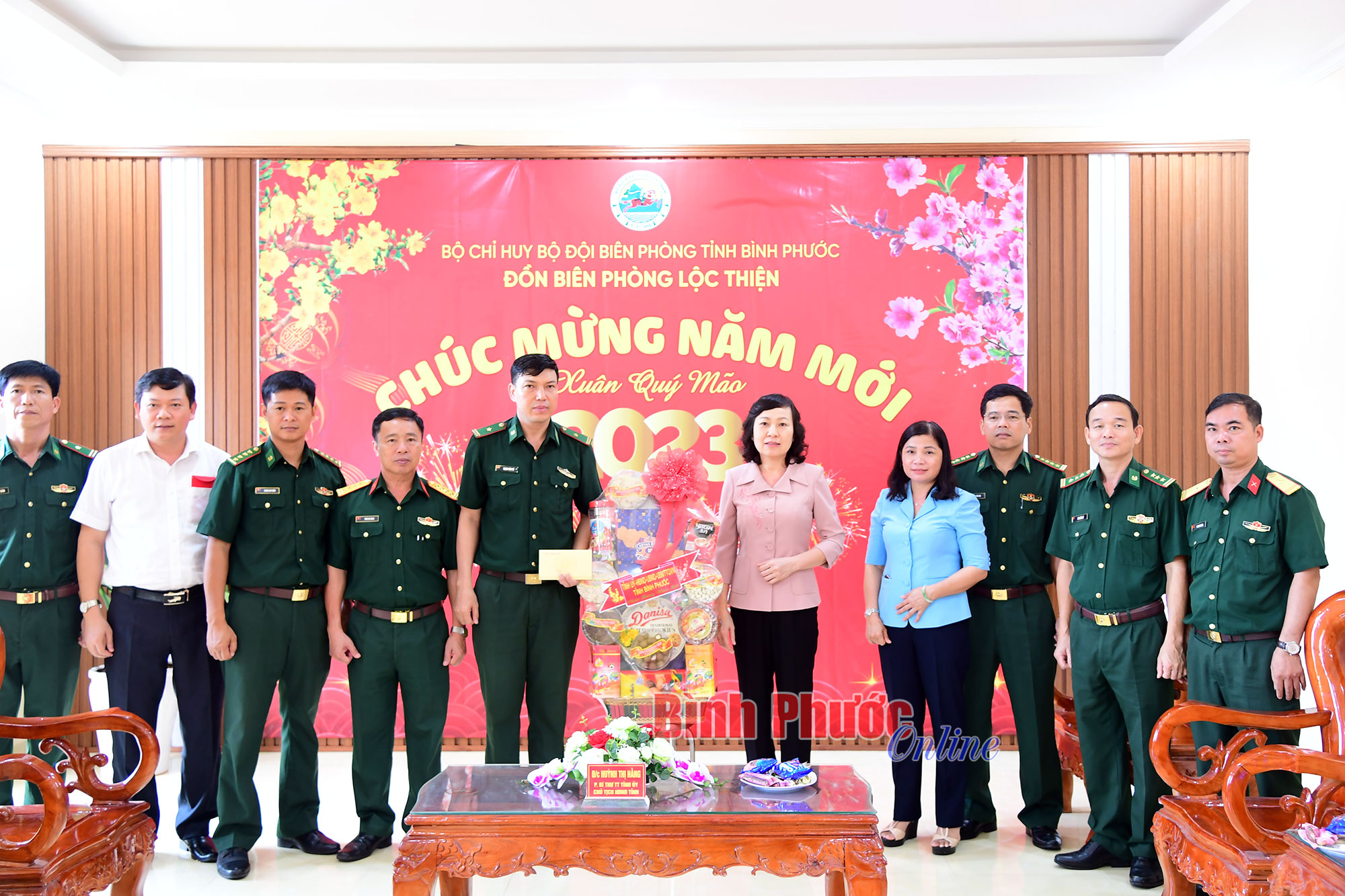 Phó Bí thư Thường trực Tỉnh ủy, Chủ tịch HĐND tỉnh Huỳnh Thị Hằng thăm, chúc tết cán bộ, chiến sĩ Đồn biên phòng Lộc Thiện