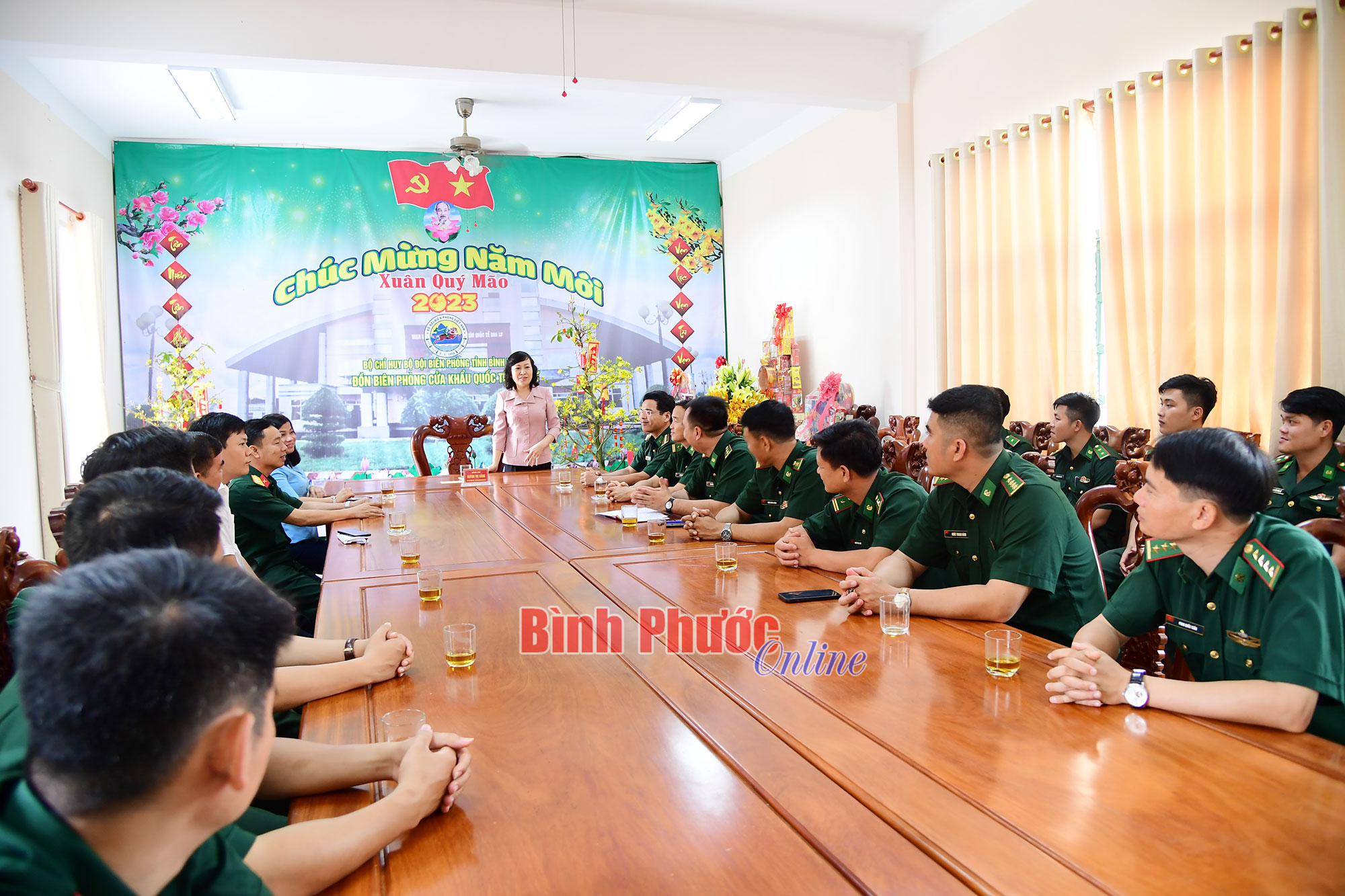 Phó Bí thư Thường trực Tỉnh ủy, Chủ tịch HĐND tỉnh Huỳnh Thị Hằng thăm, chúc tết cán bộ, chiến sĩ Đồn biên phòng Cửa khẩu quốc tế Hoa Lư