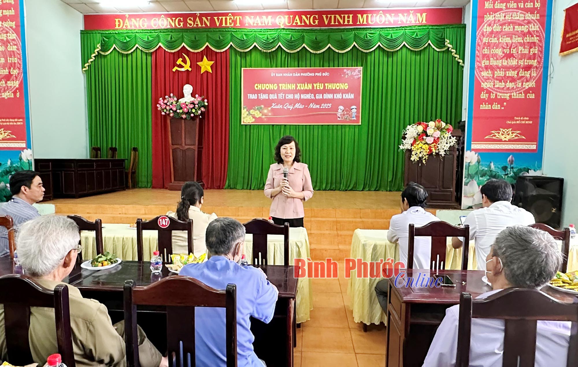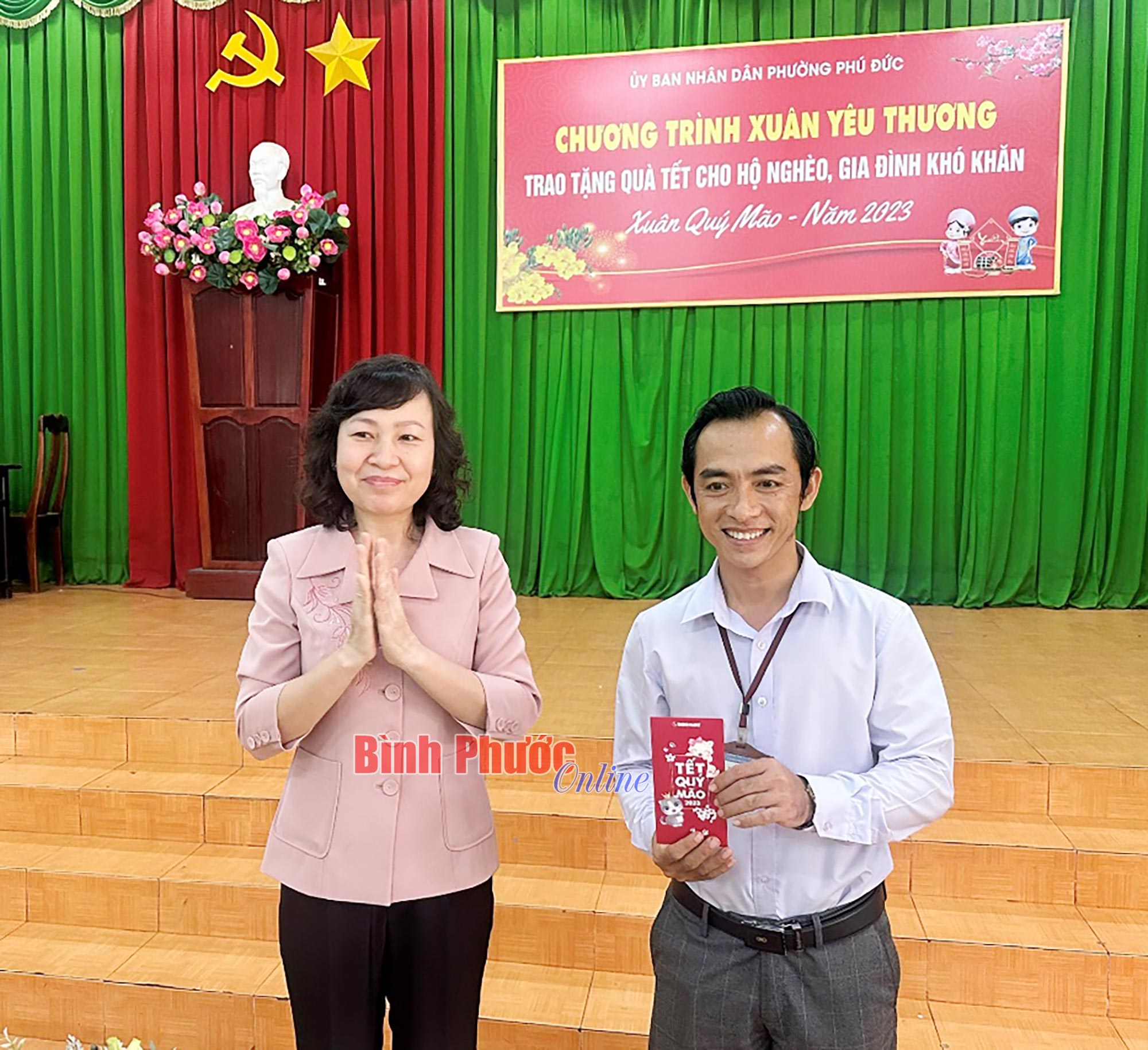 Phó Bí thư Thường trực Tỉnh ủy, Chủ tịch HĐND tỉnh Huỳnh Thị Hằng và đoàn công tác đã đến thăm và trao tặng 200 phần quà tết, mỗi phần 500 ngàn đồng tiền mặt cho các hộ chính sách hoàn cảnh khó khăn, hộ nghèo, cận nghèo phường Hưng Chiến, An Lộc và Phú Đức, thị xã Bình Long. Đồng thời trao tặng lực lượng chức năng làm nhiệm vụ trực tết Nguyên đán năm 2023 của mỗi phường một phần quà là 5 triệu đồng. Tổng trị giá các phần quà là 115 triệu đồng.