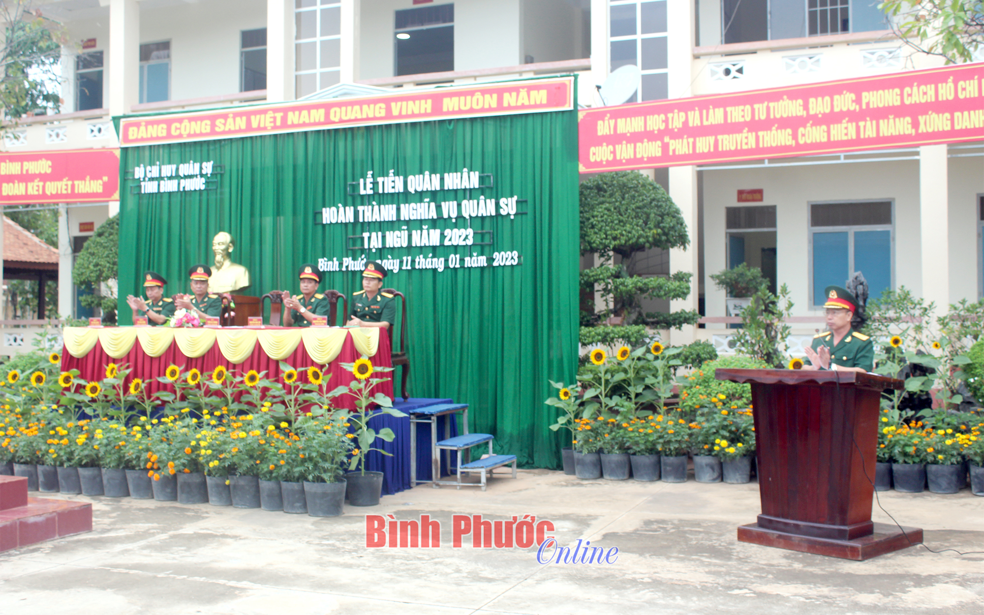 Phát biểu tại buổi lễ, Đại tá Trần Bá Chung biểu dương thành tích đạt được của 399 quân nhân trong thời gian tại ngũ; đồng thời mong rằng khi trở về địa phương, các quân nhân sẽ phát huy tốt phẩm chất bộ đội Cụ Hồ, tích cực phát triển kinh tế gia đình, là lực lượng nòng cốt giữ gìn an ninh chính trị, trật tự an toàn xã hội ở địa phương, góp sức xây dựng địa phương ngày càng giàu đẹp.