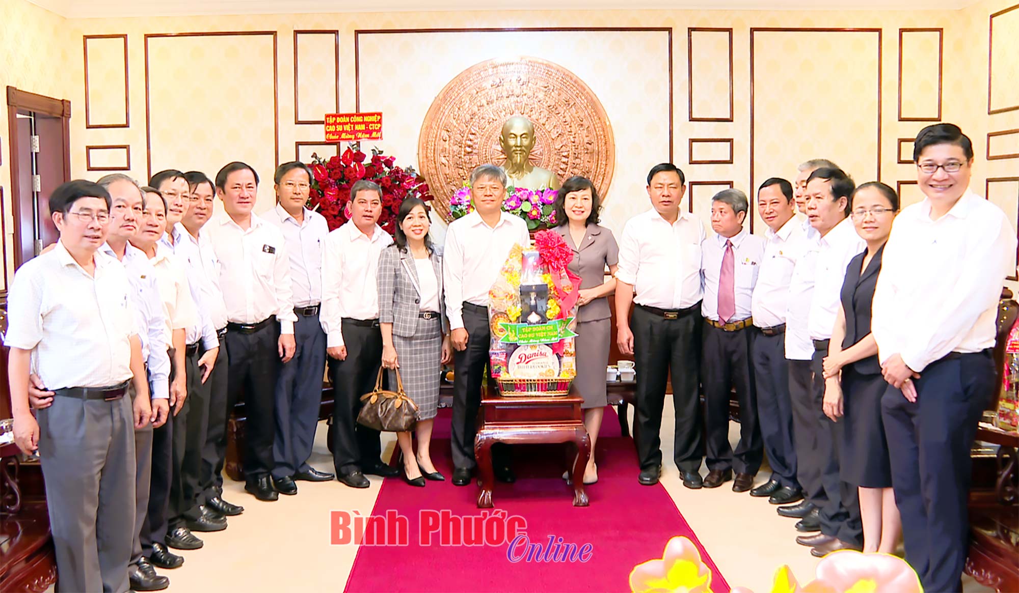 Chủ tịch Hội đồng quản trị Tập đoàn Công nghiệp cao su Việt Nam Trần Công Kha tặng quà tết UBND tỉnh Bình Phước