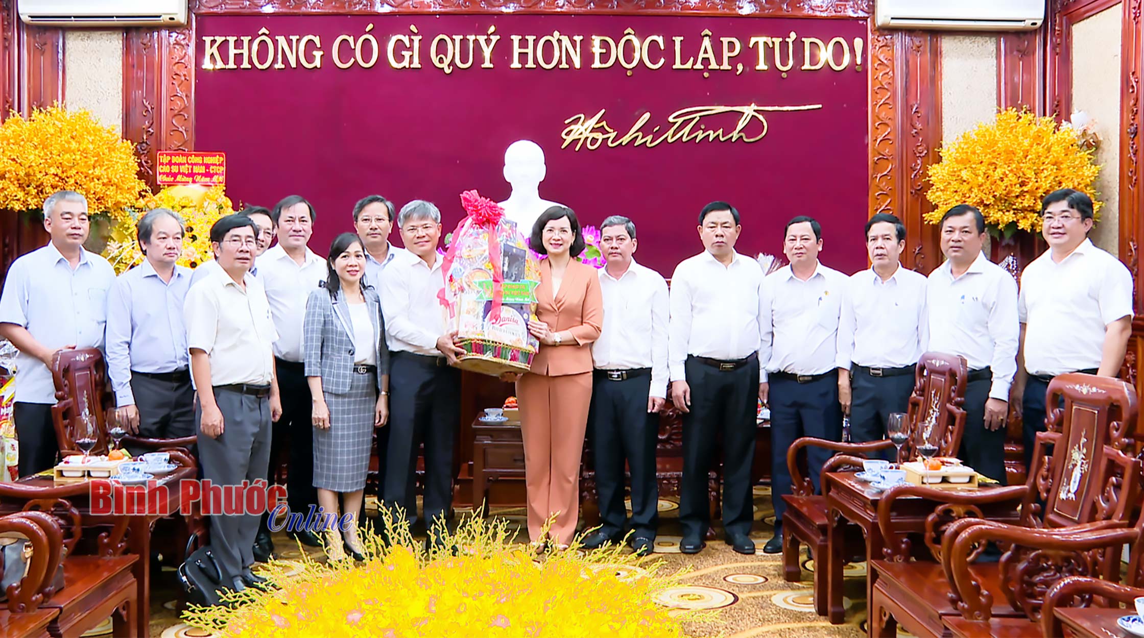 Phó Bí thư Thường trực Tỉnh ủy, Chủ tịch HĐND tỉnh Huỳnh Thị Hằng cảm ơn lãnh đạo Tập đoàn Công nghiệp cao su Việt Nam đã đến thăm và chúc tết Tỉnh ủy Bình Phước. Đồng thời ghi nhận những đóng góp của tập đoàn nói chung và các công ty cao su trên địa bàn tỉnh nói riêng đã gắn bó, đồng hành với sự phát triển của địa phương trong những năm qua. Phó Bí thư Thường trực Tỉnh ủy, Chủ tịch HĐND tỉnh Huỳnh Thị Hằng chúc Tập đoàn Công nghiệp cao su Việt Nam và các công ty cao su ở Bình Phước sẽ có nhiều đột phá trong năm mới.