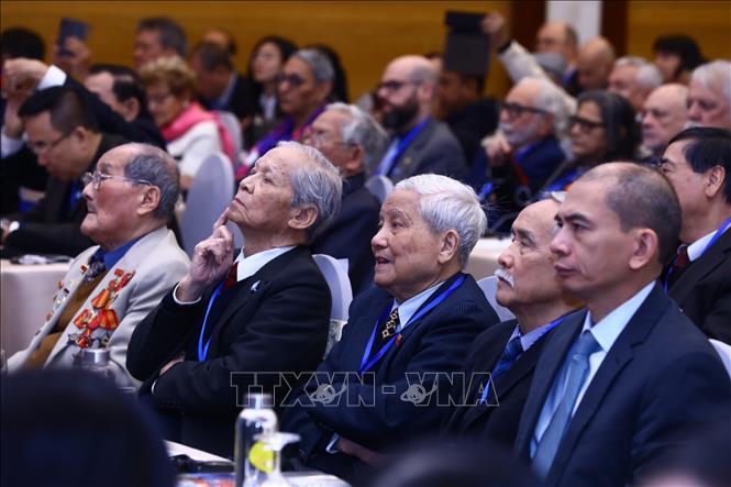 Thường trực Ban Bí thư Võ Văn Thưởng, Phó Chủ tịch Quốc hội Thường trực Trần Thanh Mẫn cùng các đồng chí lãnh đạo, nguyên lãnh đạo Đảng, Nhà nước, các nhân chứng lịch sử tham dự buổi lễ