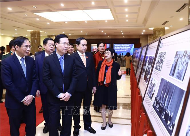 Thường trực Ban Bí thư Võ Văn Thưởng và Phó Chủ tịch Thường trực Quốc hội Trần Thanh Mẫn cùng các đại biểu đến dự lễ kỷ niệm