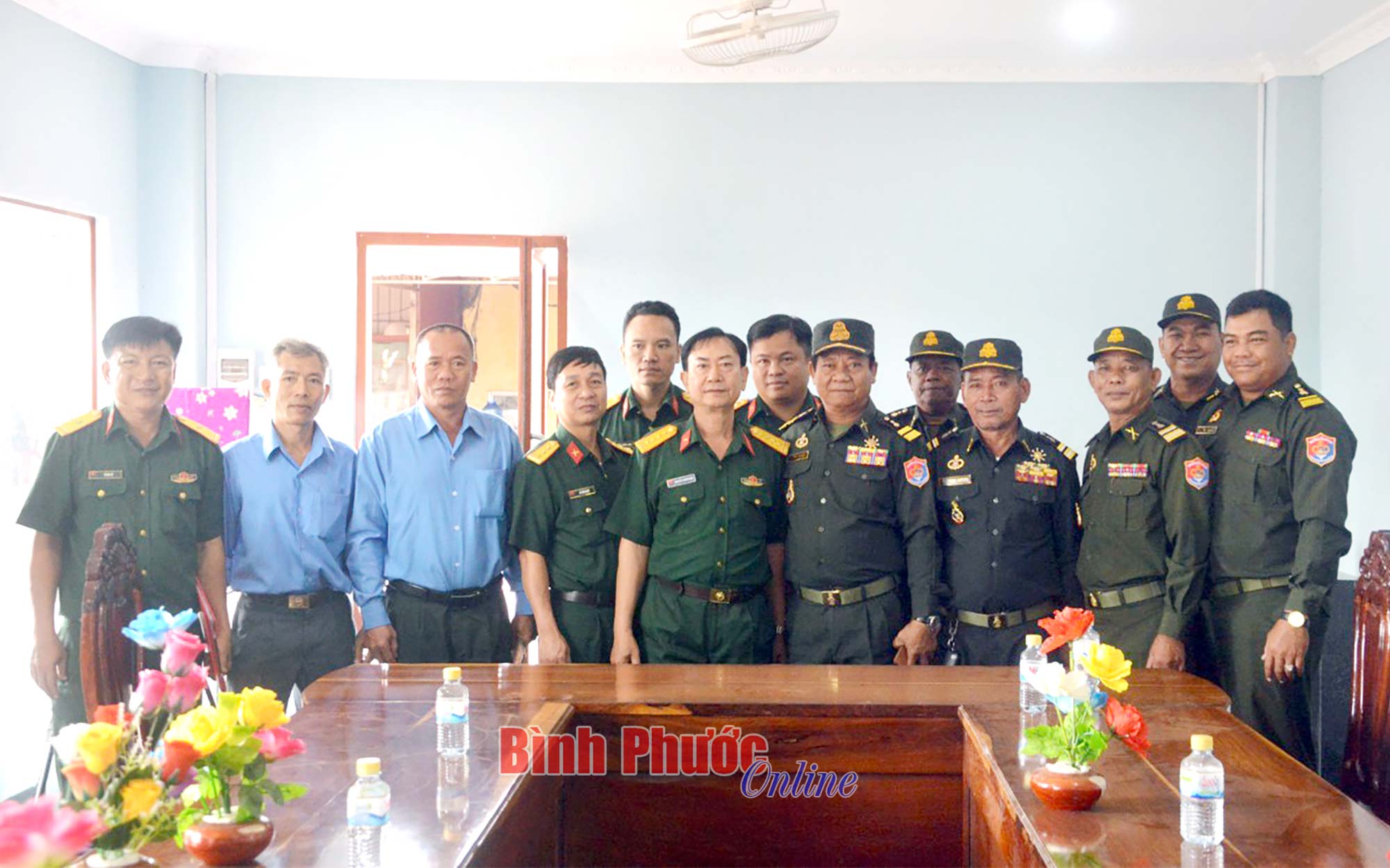 Tiếp và làm việc với đoàn công tác Bộ CHQS tỉnh có ngài Pen Sô Khươn, Phó Chỉ huy trưởng, Tham mưu trưởng Tiểu khu Quân sự tỉnh Kratie và Trung tướng Som Sun, Chỉ huy trưởng Tiểu khu Quân sự tỉnh Kampong Thom.