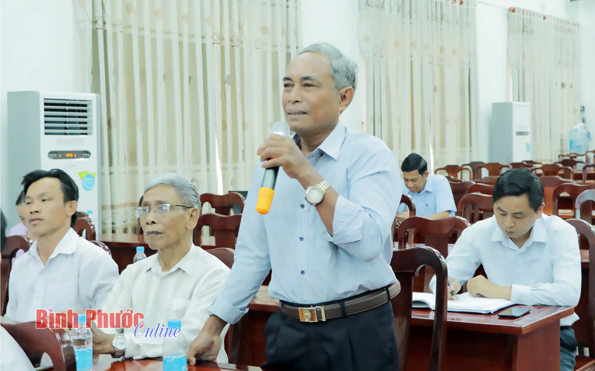 Ông Thạch Nhị, người có uy tín trong đồng bào dân tộc thiểu số ở phường Tân Xuân (TP. Đồng Xoài) trao đổi về xây dựng cơ sở hạ tầng vùng đồng bào dân tộc thiểu số