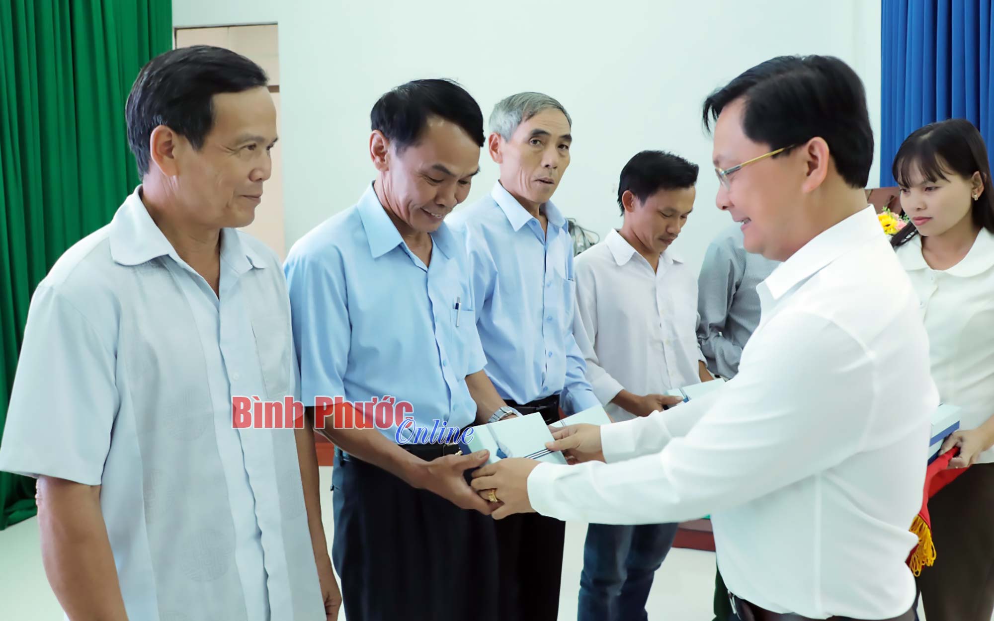 Ủy viên Ban Thường vụ Tỉnh ủy, Bí thư Thành ủy Đồng Xoài Hà Anh Dũng trao quà cho các vị già làng, người có uy tín trong đồng bào dân tộc thiểu số