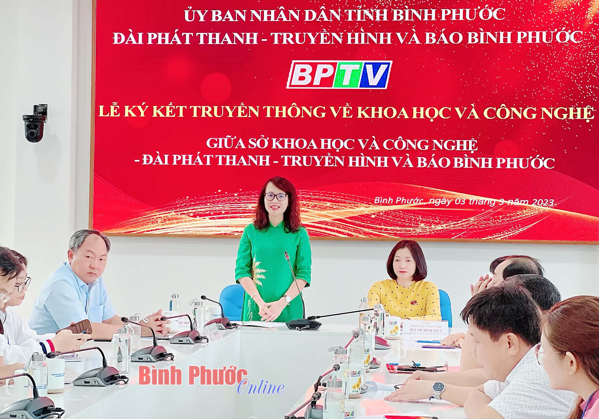 Phát biểu tại lễ ký kết, Giám đốc Sở KH&CN Bùi Thị Minh Thúy đánh giá cao sự phối hợp của hai cơ quan cũng như vai trò truyền thông của BPTV với ngành khoa học và công nghệ