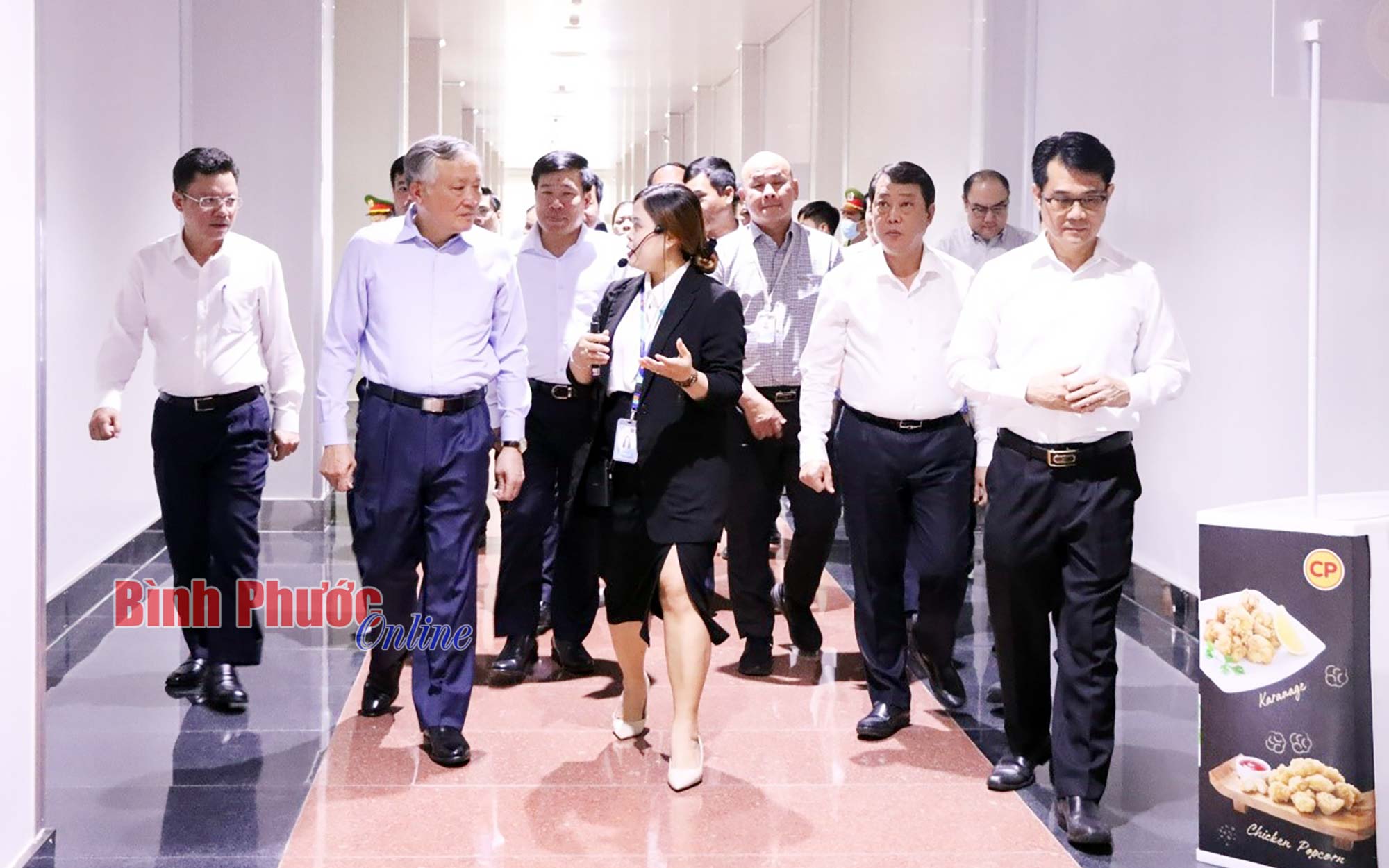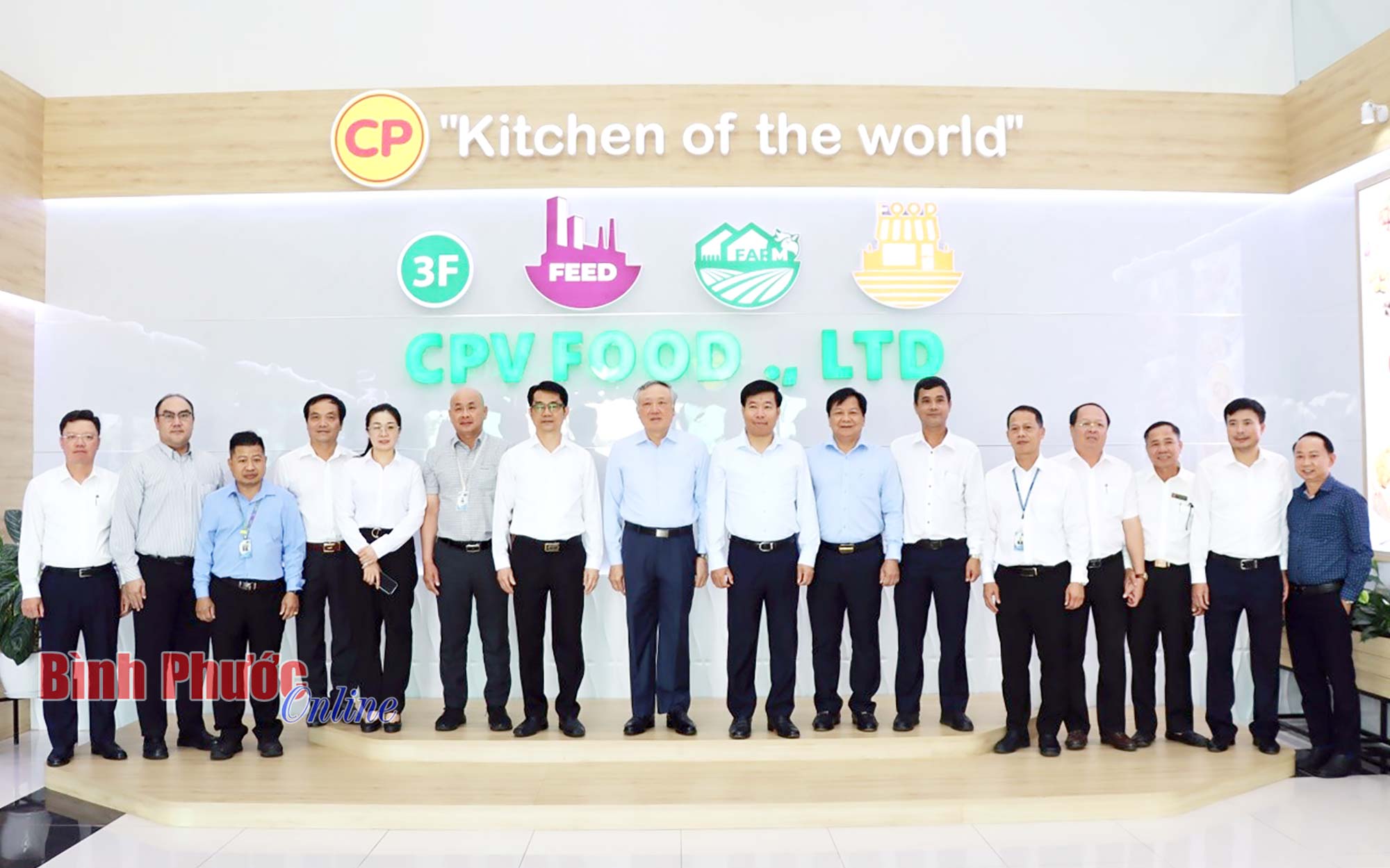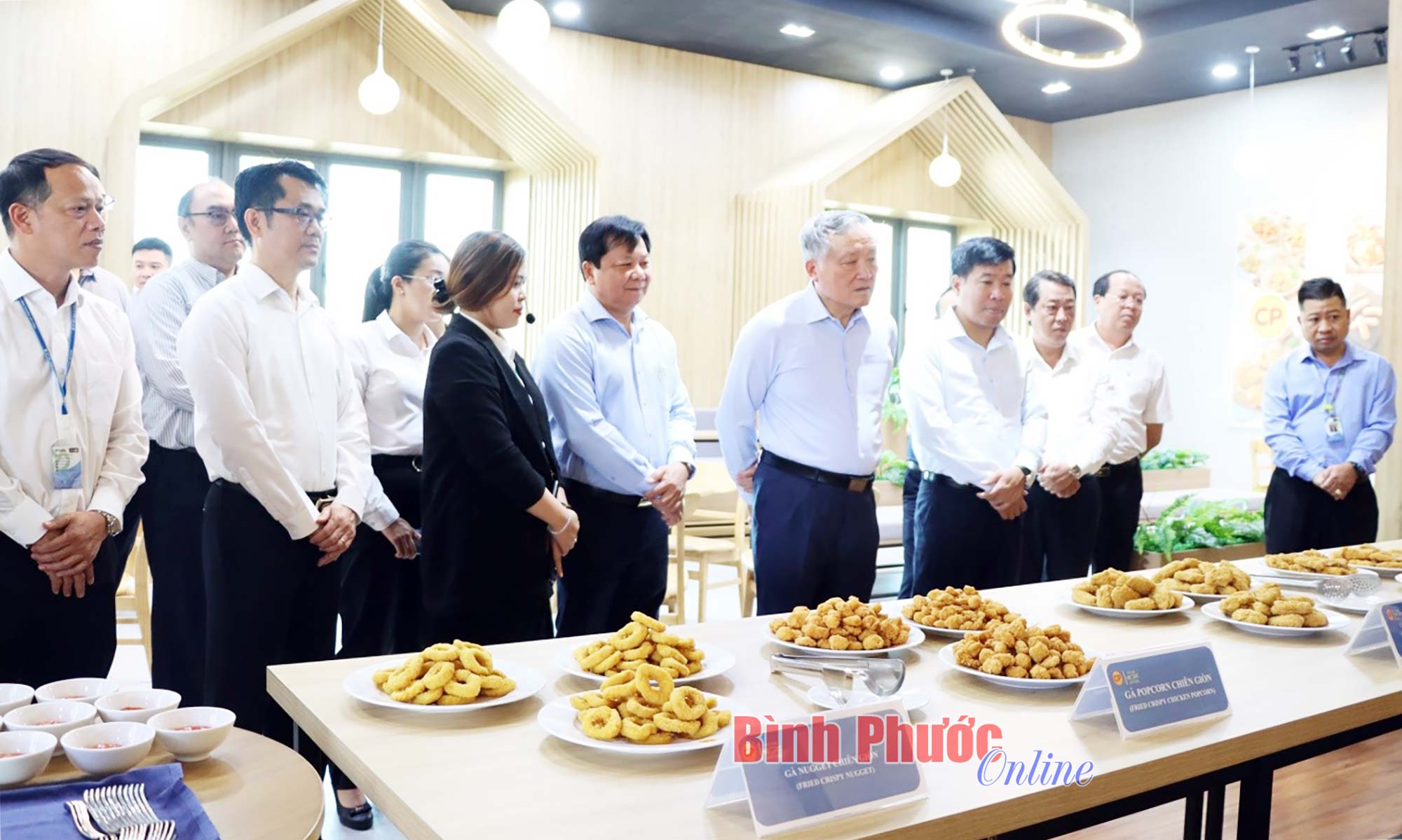 Đoàn đã đến thăm Nhà máy CPV Food - Bình Phước tại khu B, Khu công nghiệp Becamex - Bình Phước, phường Minh Thành, thị xã Chơn Thành. Tổ hợp nhà máy xuất khẩu gà CPV Food có tổng vốn đầu tư 250 triệu USD, do Tập đoàn CP Thái Lan làm chủ đầu tư. Đây là tổ hợp các nhà máy và trang trại chăn nuôi theo mô hình chuỗi khép kín hoàn chỉnh, gồm: nhà máy thức ăn chăn nuôi - trang trại gà giống bố mẹ - nhà máy ấp trứng - trang trại gà thịt - nhà máy giết mổ và chế biến, cùng với hệ thống xử lý phế phẩm. Hiện nhà máy có hơn 2.000 lao động làm việc, hoạt động với công suất đạt 1 triệu con gà/tuần. Các sản phẩm sản xuất tại nhà máy được xuất sang Nhật Bản, Hồng Kông (Trung Quốc), các nước láng giềng khu vực châu Á và chuẩn bị xuất khẩu sang châu Âu.