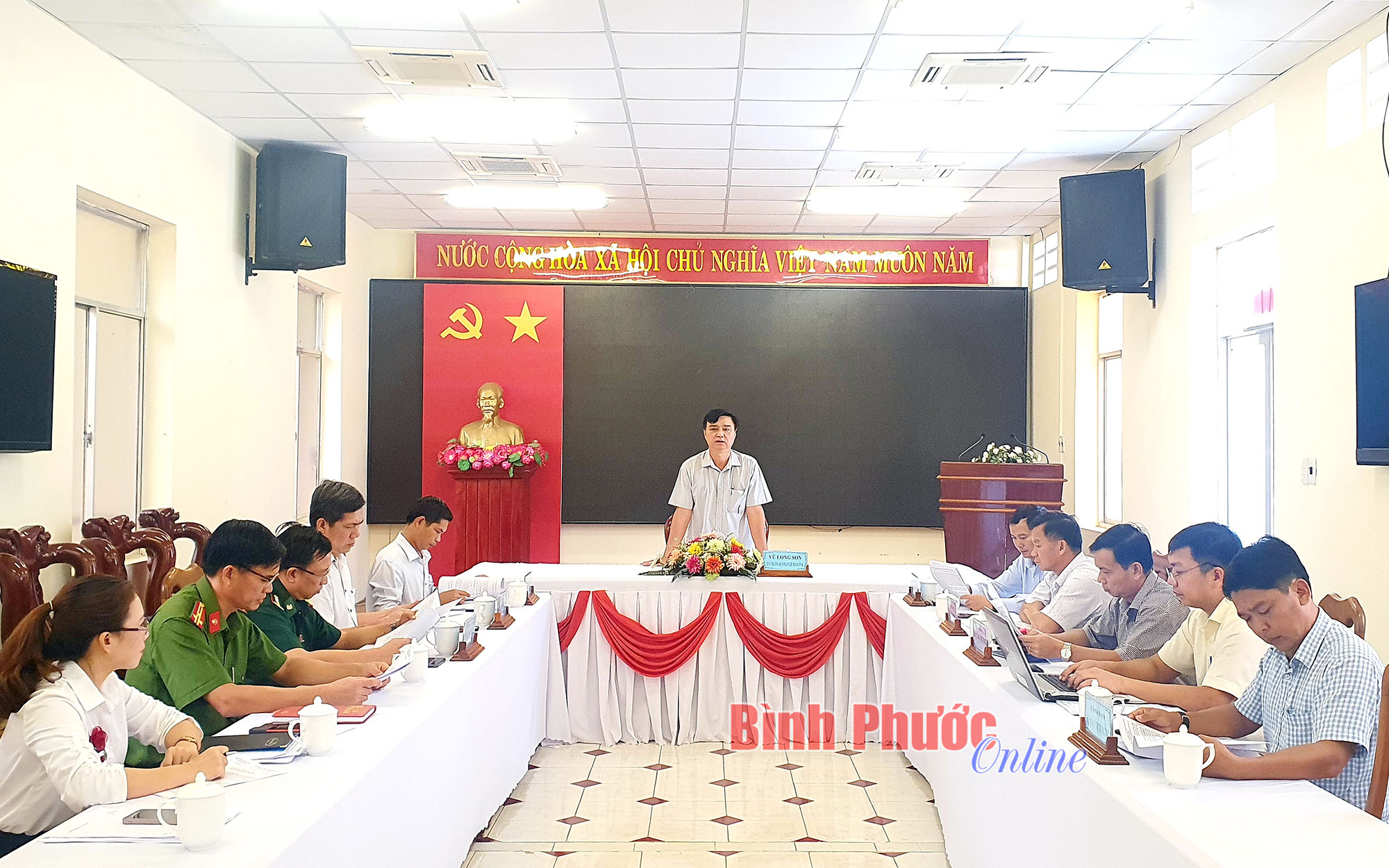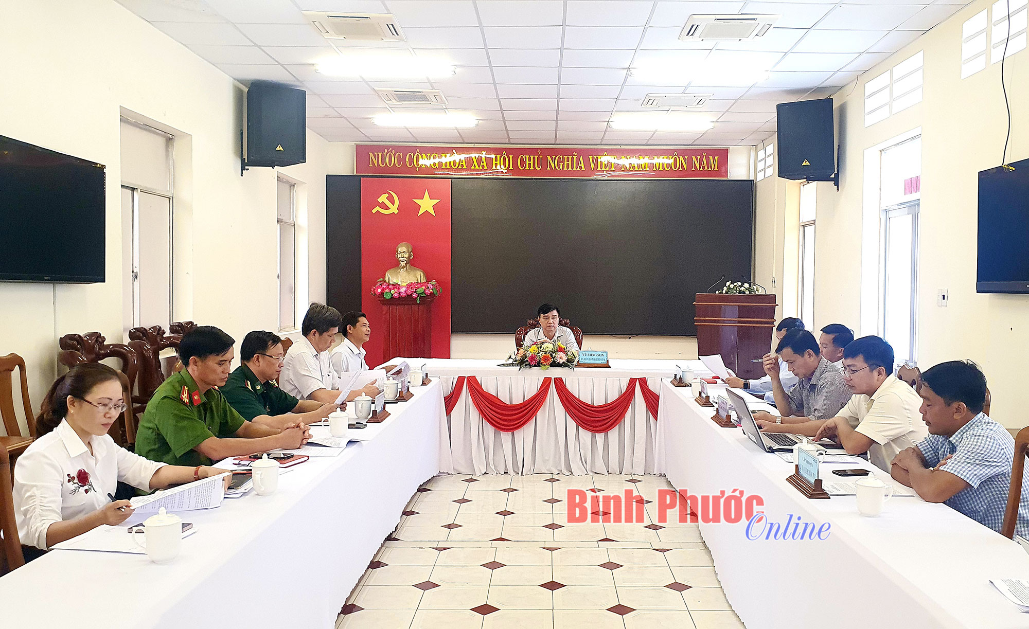 Tỉnh ủy viên, Trưởng ban Pháp chế HĐND tỉnh Vũ Long Sơn chủ trì cuộc họp.