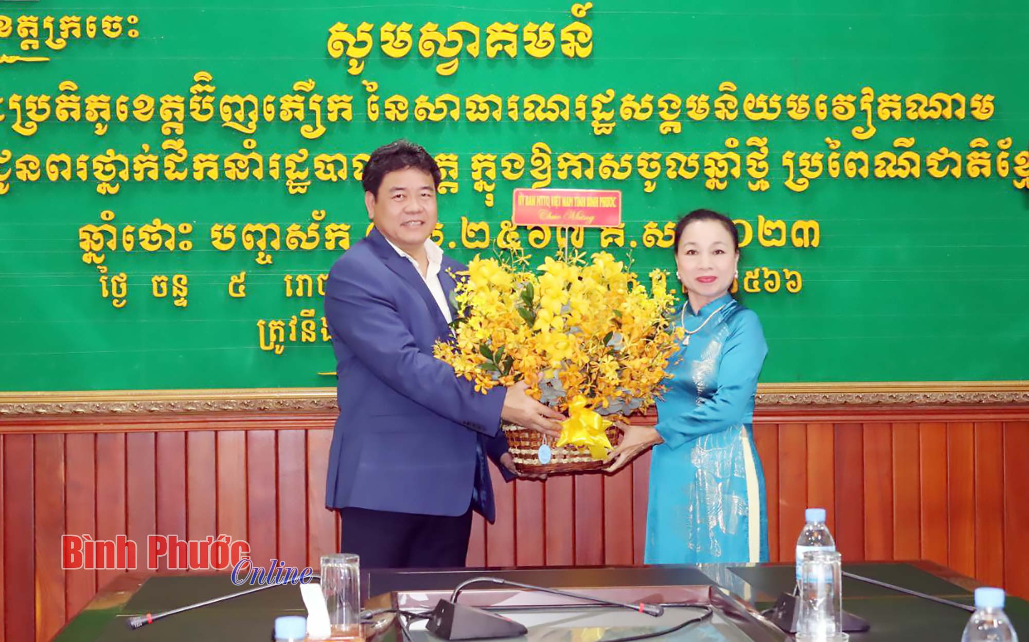 Đại diện lãnh đạo Mặt trận Đoàn kết phát triển Tổ quốc Campuchia các tỉnh Kratie, Mundulkiri, Tbong Khmum cảm ơn những lời chúc tết tốt đẹp và tình cảm chân thành của Ủy ban MTTQ Việt Nam tỉnh Bình Phước nhân dịp tết cổ truyền của đất nước Campuchia. Đồng thời cho biết, trong thời gian tới sẽ phối hợp chặt chẽ hơn nữa để góp phần tăng cường quan hệ láng giềng tốt đẹp, hữu nghị truyền thống, hợp tác toàn diện, bền vững lâu dài giữa hai nước Việt Nam - Campuchia nói chung, giữa tỉnh Bình Phước và Kratie, Mundulkiri, Tbong Khmum nói riêng, vì lợi ích của nhân dân hai nước, vì hòa bình, ổn định, hợp tác và phát triển ở khu vực và trên thế giới.