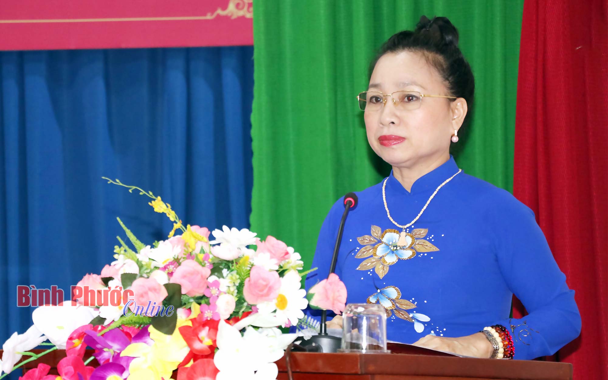 Ủy viên Ban Thường vụ, Trưởng ban Dân vận Tỉnh ủy, Chủ tịch UBMTTQVN tỉnh Lê Thị Xuân Trang phát biểu tại lễ ký kết