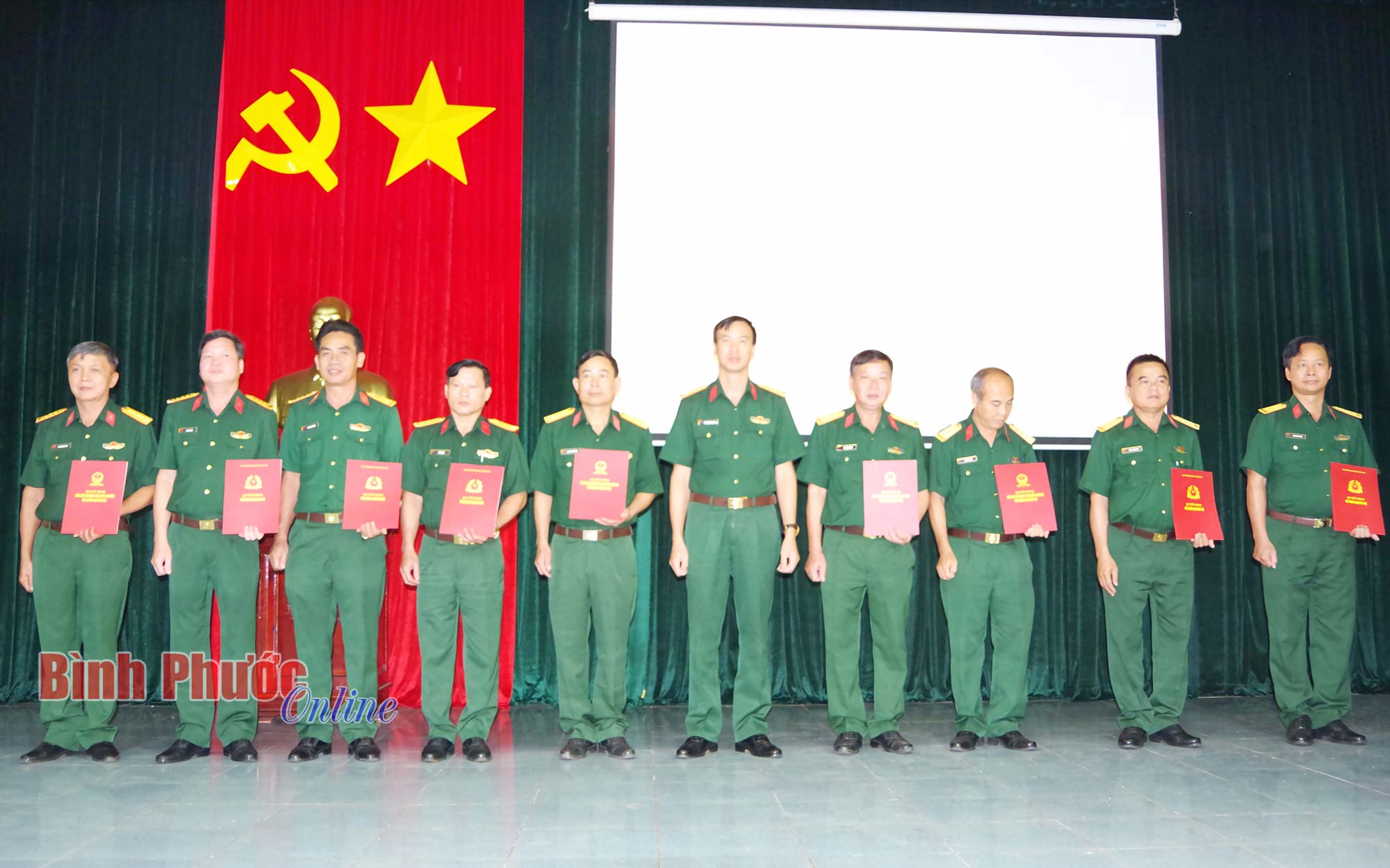 Đại tá Phạm Như Quân, Chính ủy Bộ CHQS tỉnh trao quyết định cho các cán bộ