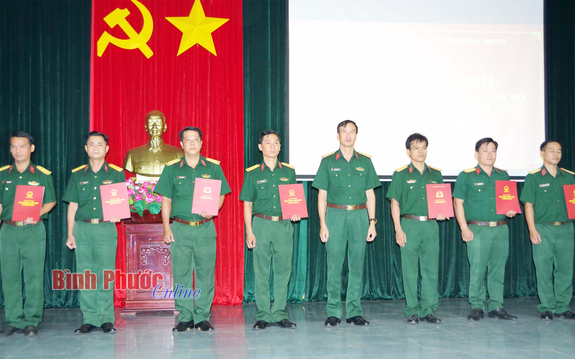 Thượng tá Đỗ Tiến Quyết, Phó Chủ nhiệm Chính trị Bộ CHQS tỉnh đã công bố quyết định điều động, bổ nhiệm cán bộ của Bộ Quốc phòng, Chính ủy Quân khu 7 cho 23 cán bộ thuộc các cơ quan, đơn vị, huyện, thị, thành phố, nhà trường thuộc Bộ CHQS tỉnh.