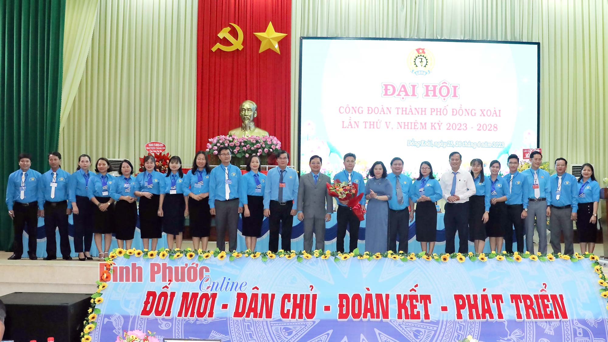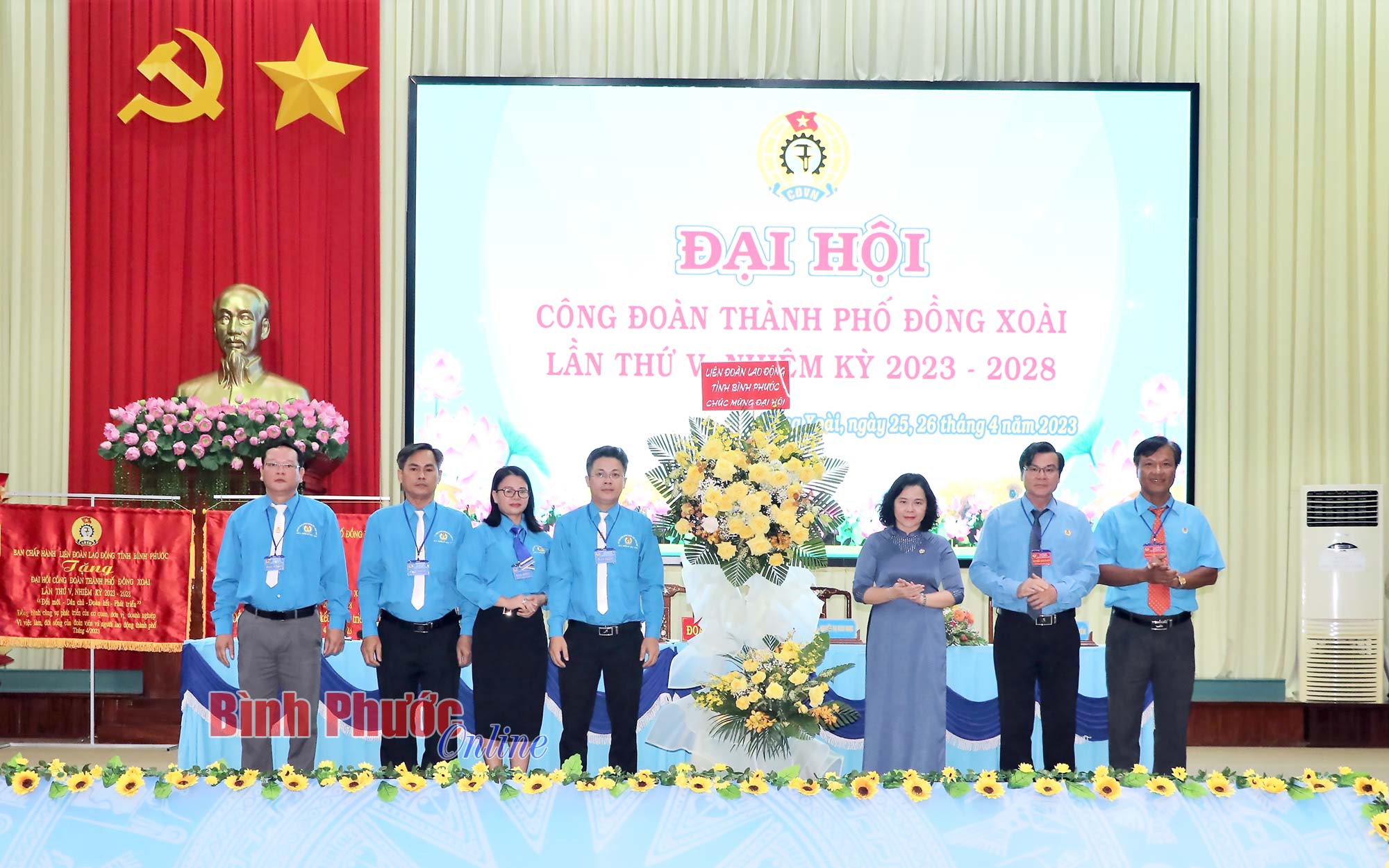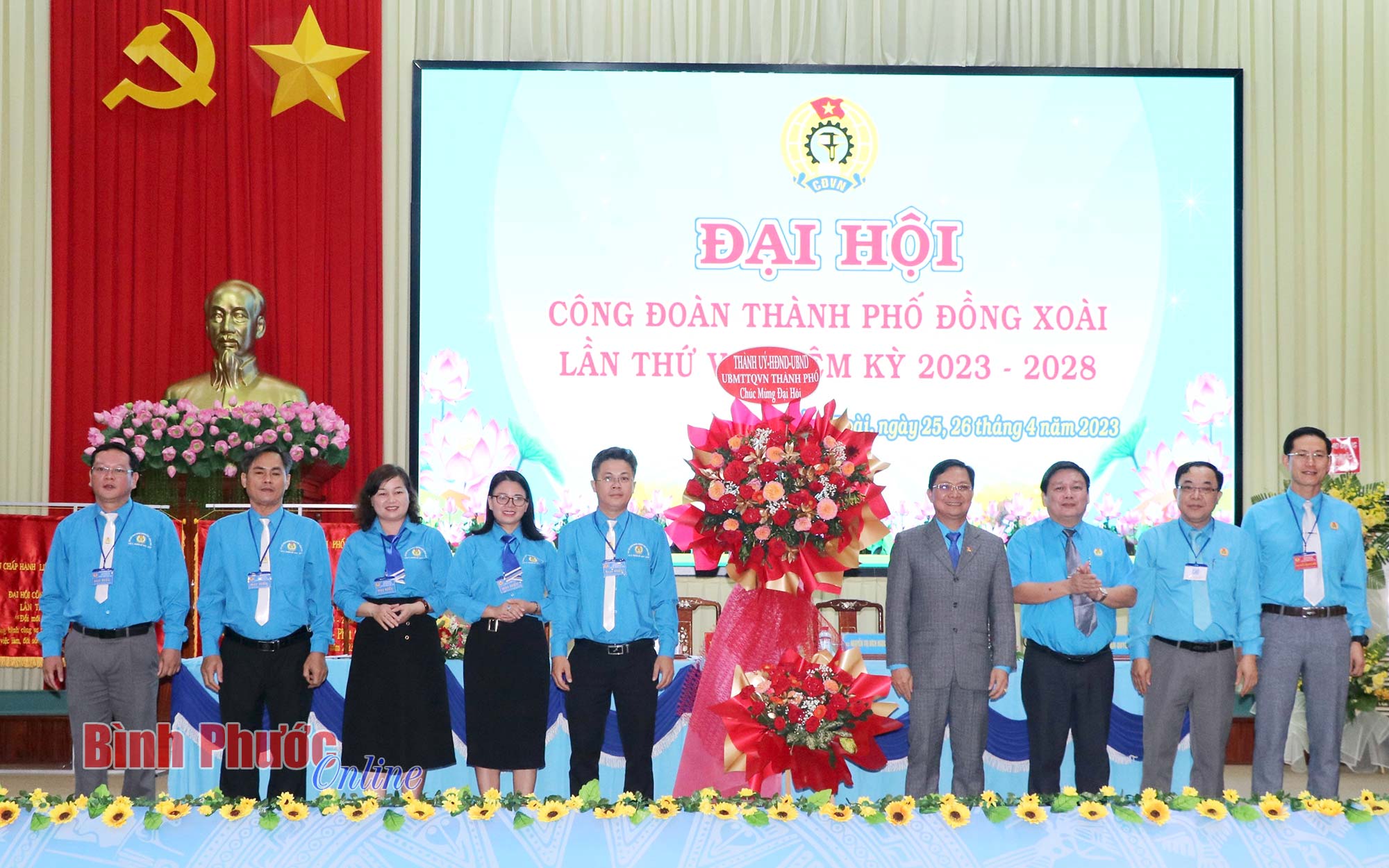 Tham dự đại hội có: Ủy viên Ban Thường vụ Tỉnh ủy, Bí thư Thành ủy Đồng Xoài Hà Anh Dũng; Ủy viên Ban Chấp hành Tổng Liên đoàn Lao động Việt Nam, Tỉnh ủy viên, Chủ tịch Liên đoàn Lao động Nguyễn Thị Hương Giang cùng lãnh đạo sở, ban, ngành, huyện, thị xã, thành phố trong tỉnh cùng 185/190 đại biểu chính thức đại diện cho hơn 8.500 đoàn viên, công chức, viên chức, lao động trong hệ thống công đoàn thành phốdự đại hội.