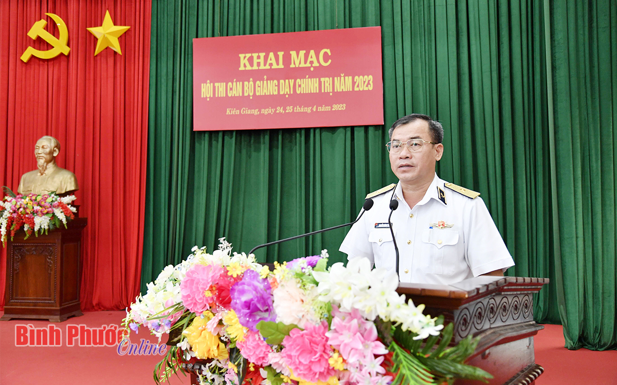 Chuẩn Đô đốc, Chính ủy Vùng 5 Hải quân Nguyễn Đăng Tiến phát biểu khai mạc hội thi