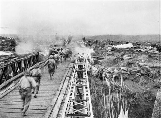 Bộ đội ta vượt qua cầu Mường Thanh, tấn công vào Sở chỉ huy Tập đoàn cứ điểm Điện Biên Phủ, chiều 7-5-1954 - Ảnh: Tư liệu TTXVN