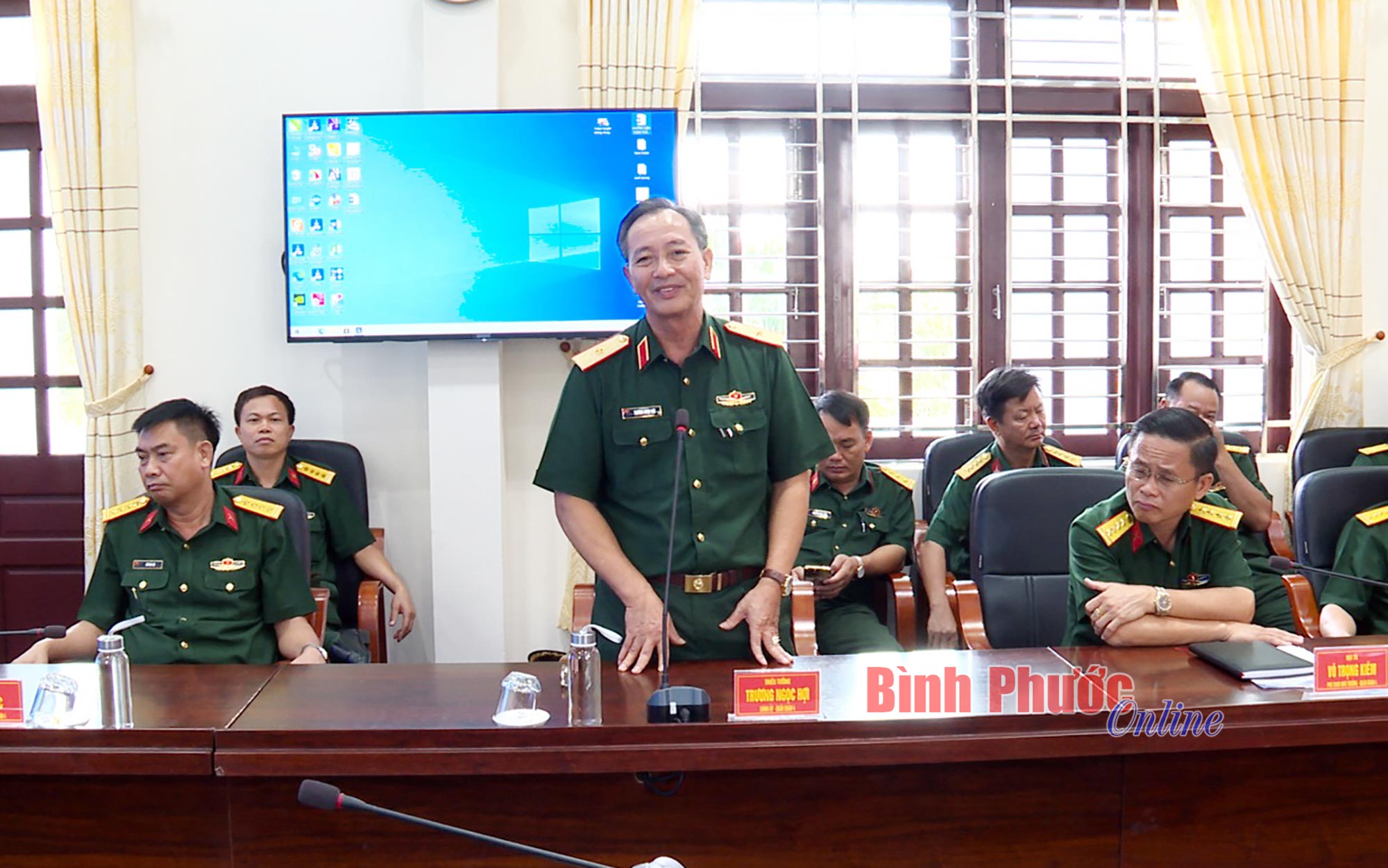 Thiếu tướng Trương Ngọc Hợi phát biểu tại buổi làm việc