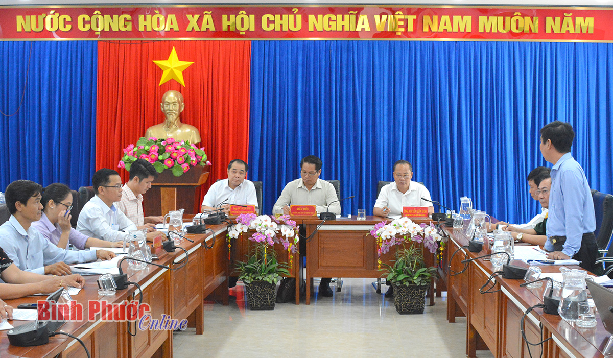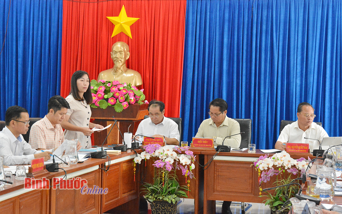 Lãnh đạo các phòng, ban huyện Phú Riềng báo cáo việc triển khai thực hiện Quyết định số 771 tại địa phương