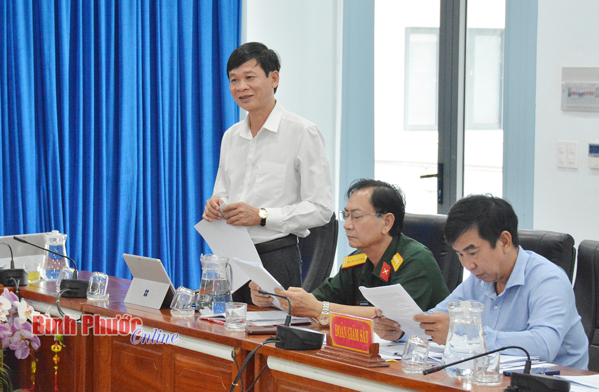 Ông Bùi Văn Hiếu, Phó Chủ tịch UBND huyện Phú Riềng báo cáo tại buổi giám sát