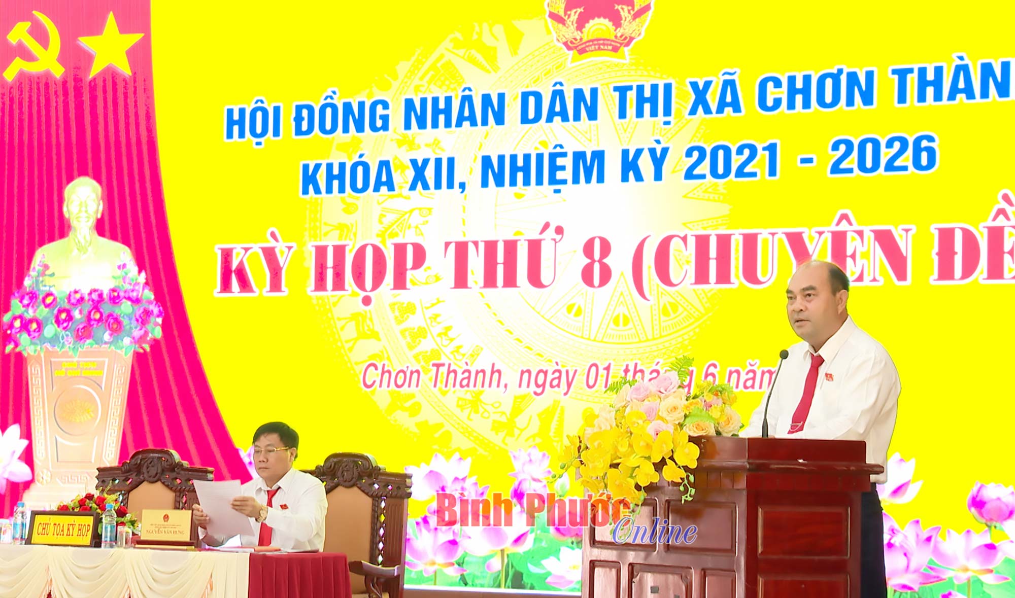 Tại kỳ họp, HĐND thị xã Chơn Thành đã thực hiện các thủ tục miễn nhiệm đại biểu HĐND thị xã và miễn nhiệm Chủ tịch HĐND thị xã đối với ông Nguyễn Tấn Hải, lý do đã chuyển công tác về HĐND tỉnh; đồng thời bầu bổ sung 2 ủy viên UBND thị xã khóa XII, nhiệm kỳ 2021-2026.