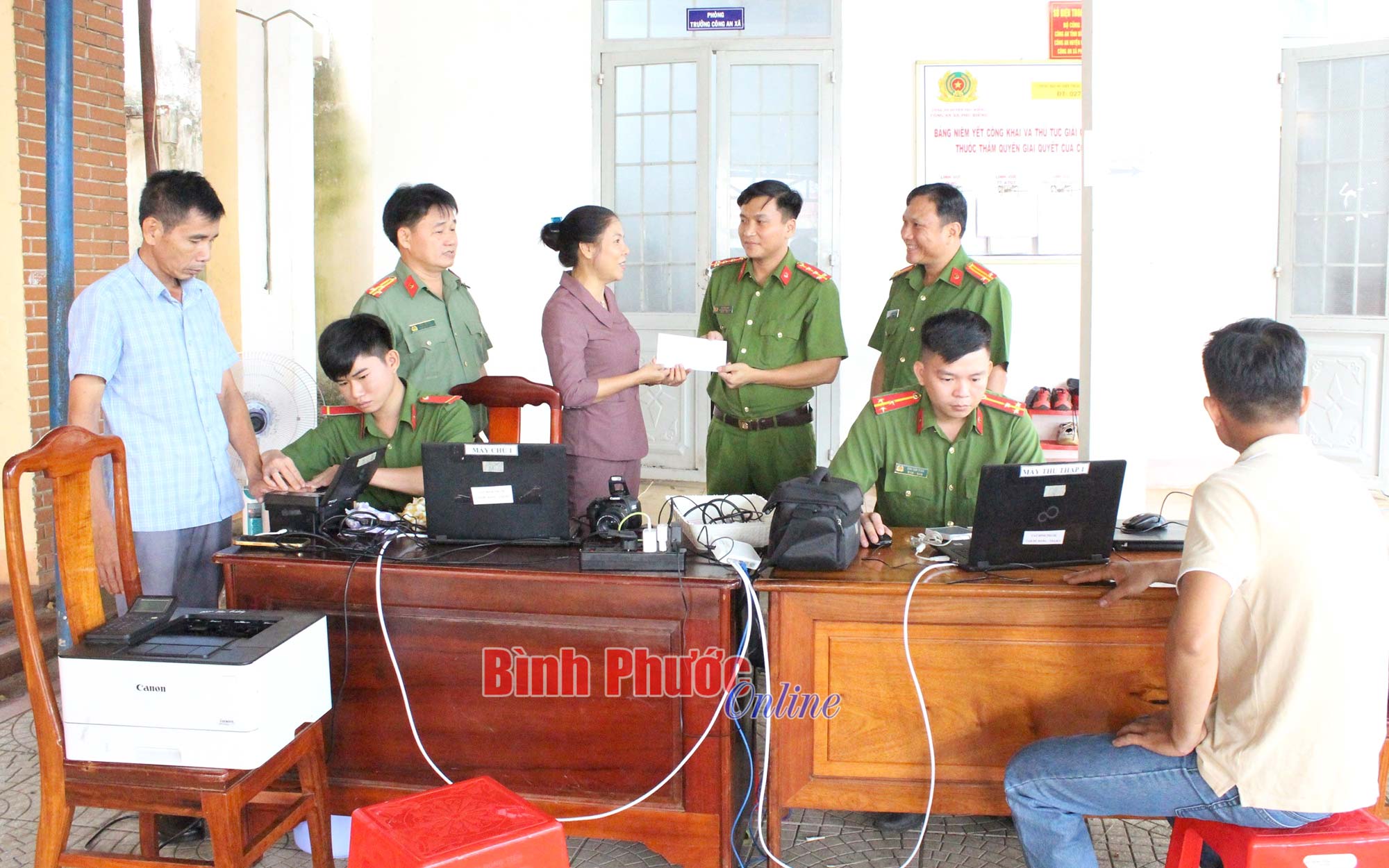 Những ngày qua, Công an huyện Phú Riềng đã tập trung lực lượng, ráo riết triển khai làm sạch dữ liệu dân cư, cấp CCCD, số hóa tàng thư, hướng dẫn người dân cài đặt và đăng ký tài khoản định danh điện tử VNeID trên điện thoại thông minh. 7 ngày trong tuần, các đơn vị đều làm việc liên tục, cả ngày lẫn đêm. Ban ngày làm lưu động tại trụ sở UBND các xã, ban đêm, các cán bộ, chiến sĩ mang theo máy móc đến tận nhà, giúp người cao tuổi, ốm đau, bệnh tật đi lại khó khăn làm CCCD, định danh điện tử.