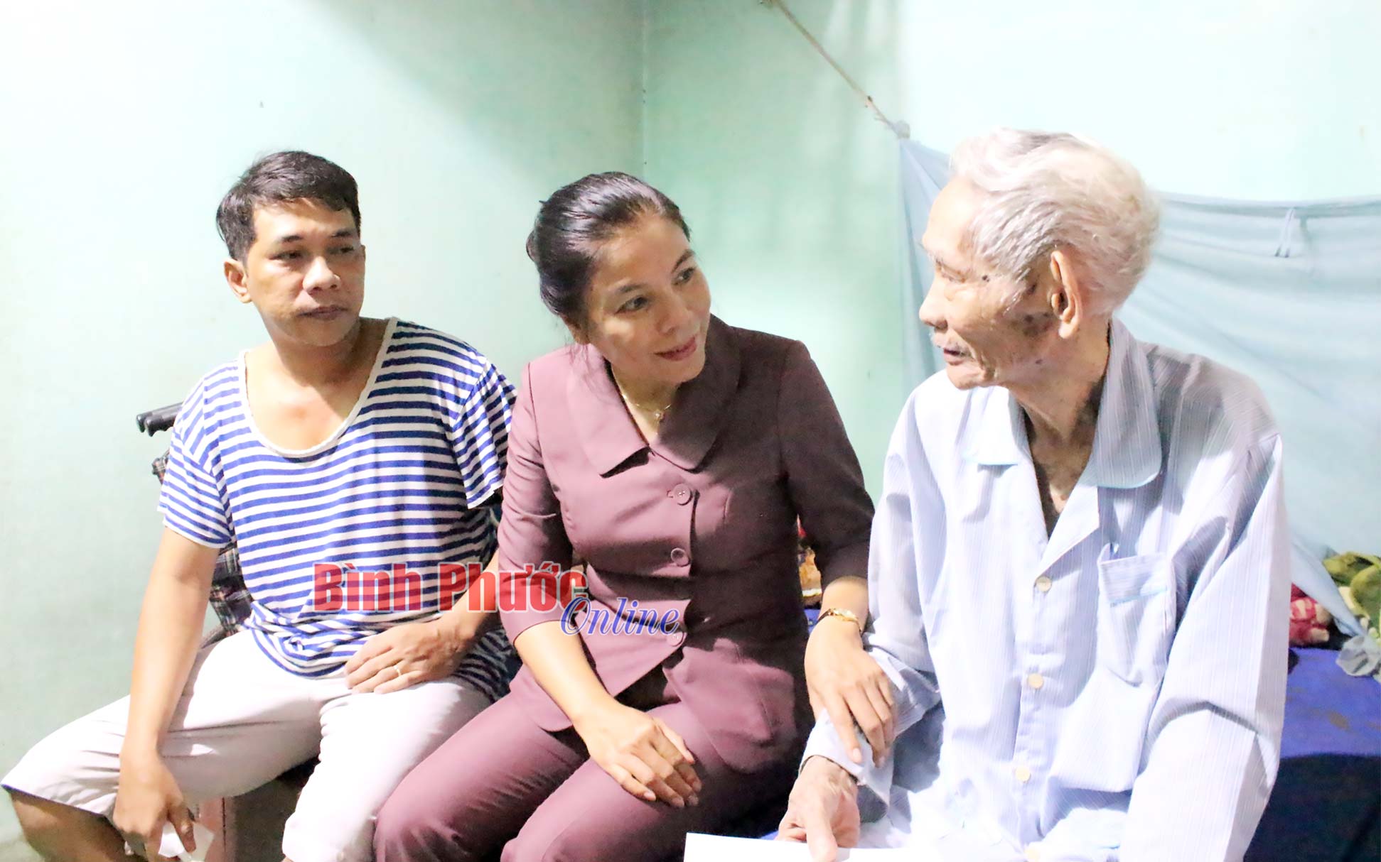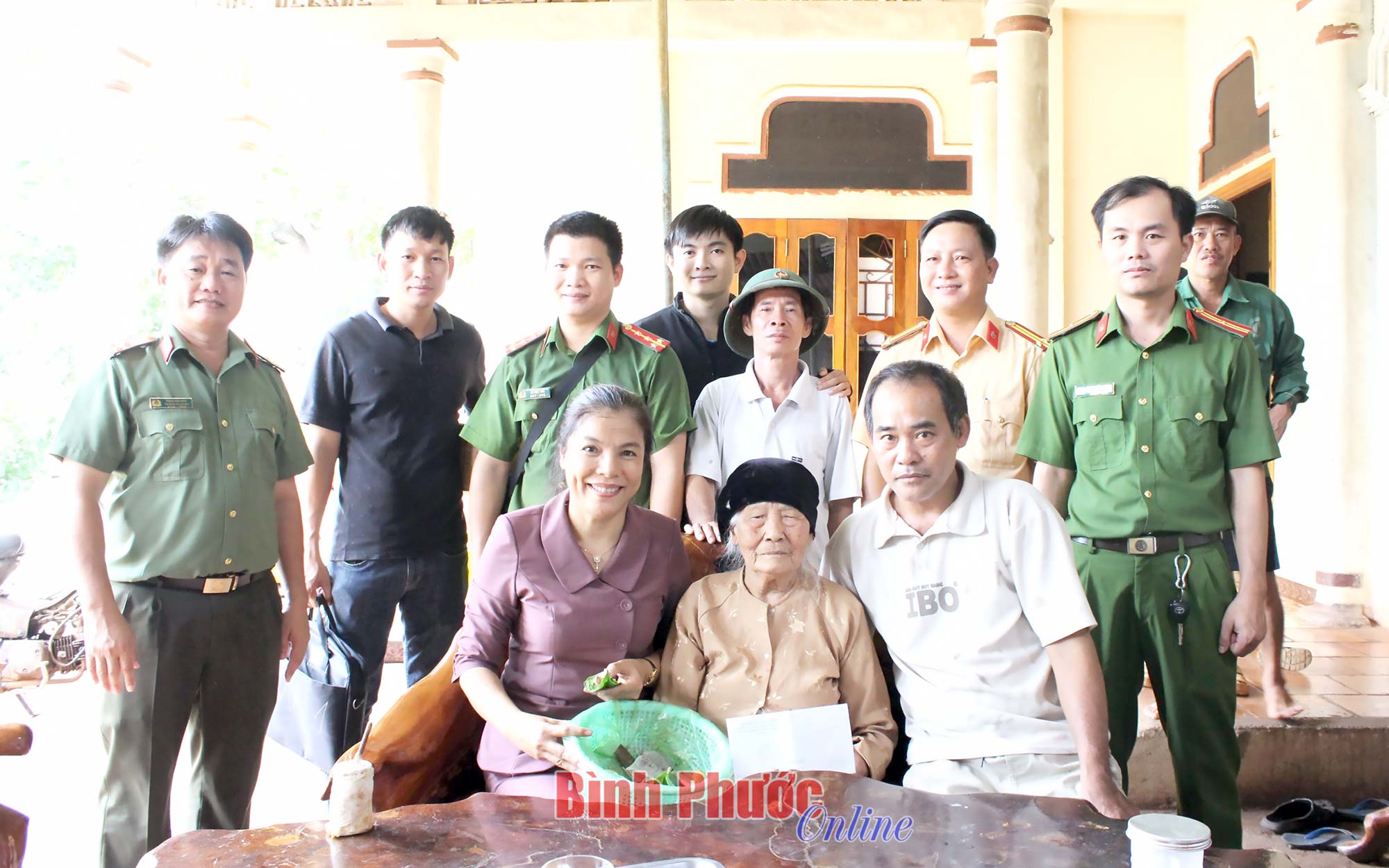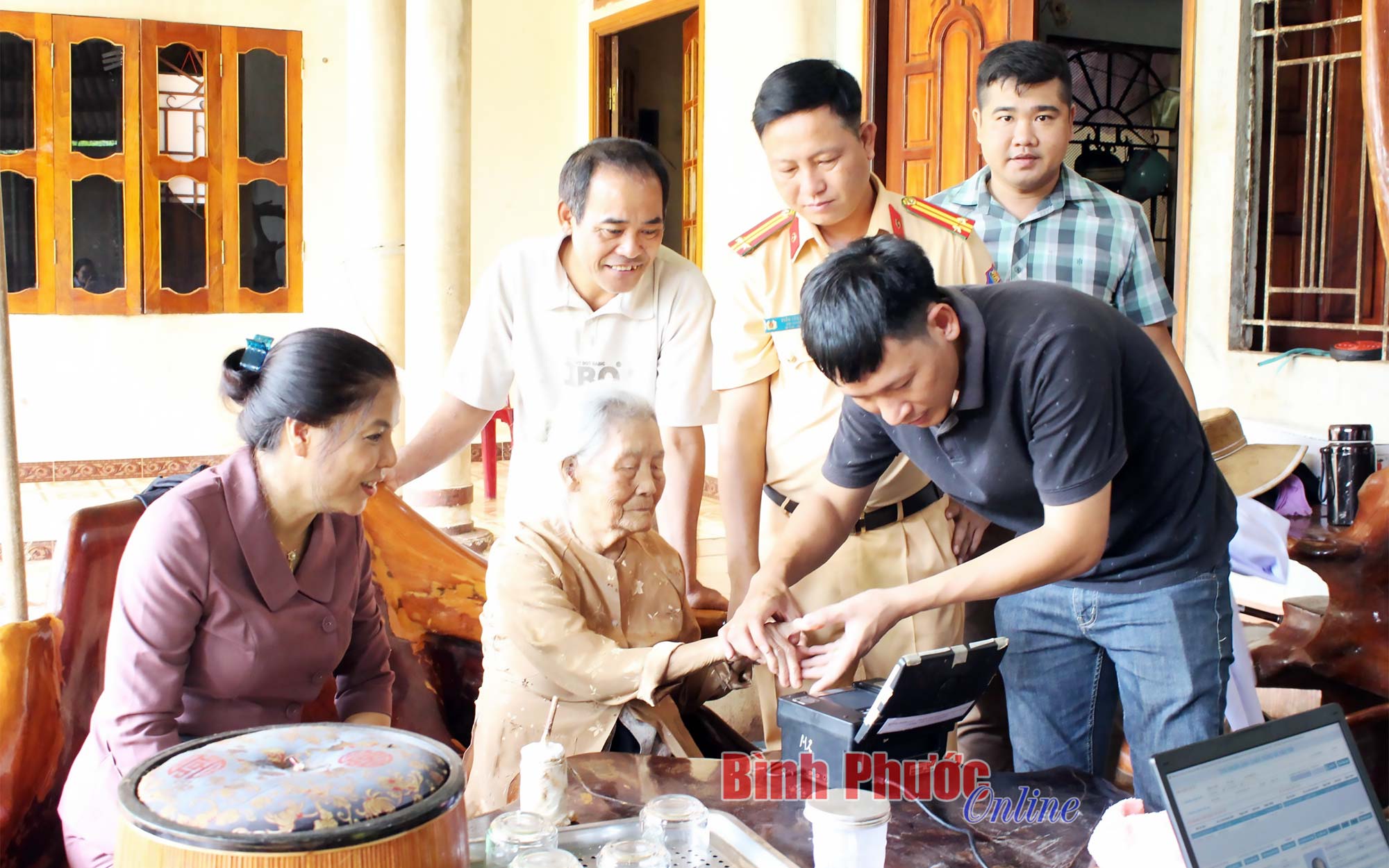 Tỉnh ủy viên, Bí thư Huyện ủy Phú Riềng Nguyễn Thị Xuân Hòa cùng lực lượng công an đến nhà làm CCCD cho người cao tuổi và có những phần quà tặng các cụ