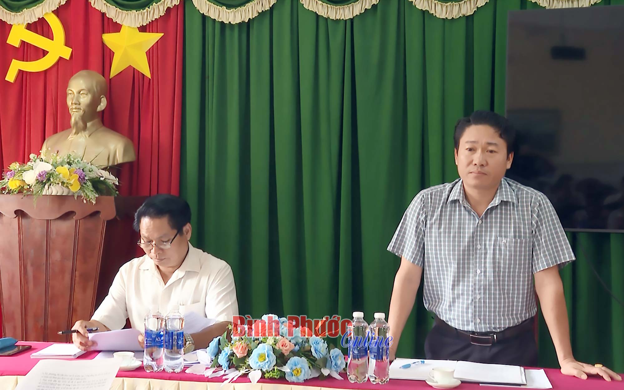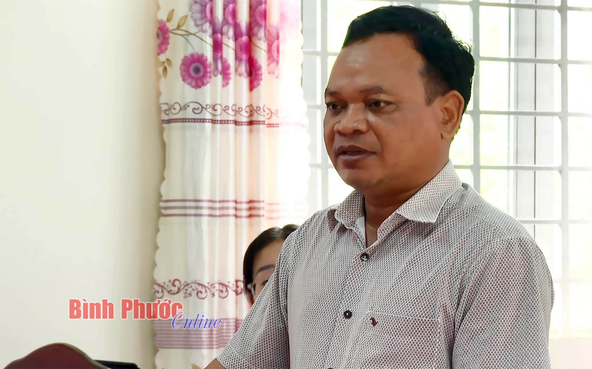 Phó hiệu trưởng Trường phổ thông Dân tộc nội trú THCS & THPT Bù Gia Mập Nguyễn Thế Hùng báo cáo tình hình thực hiện các chế độ, chính sách tại trường
