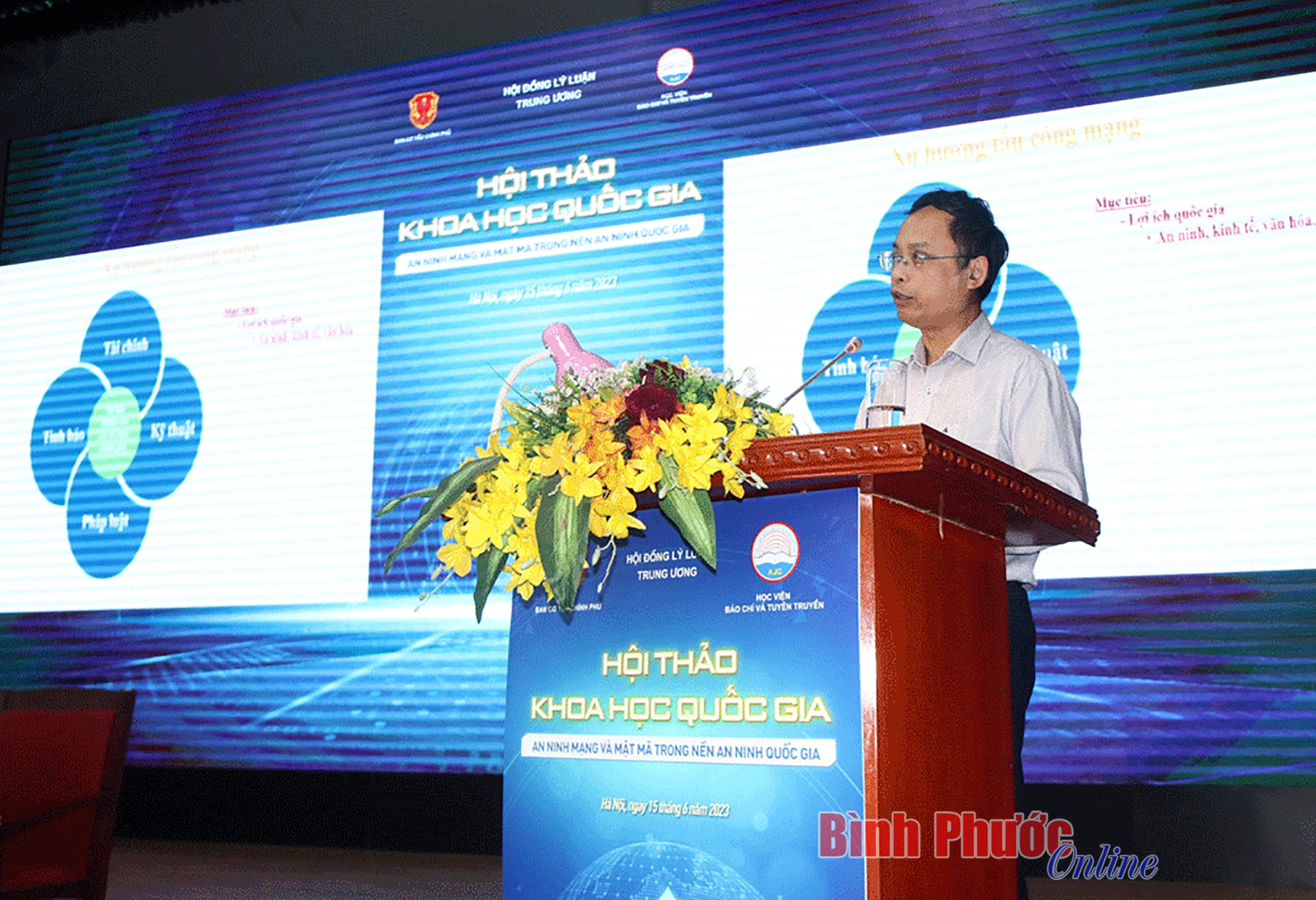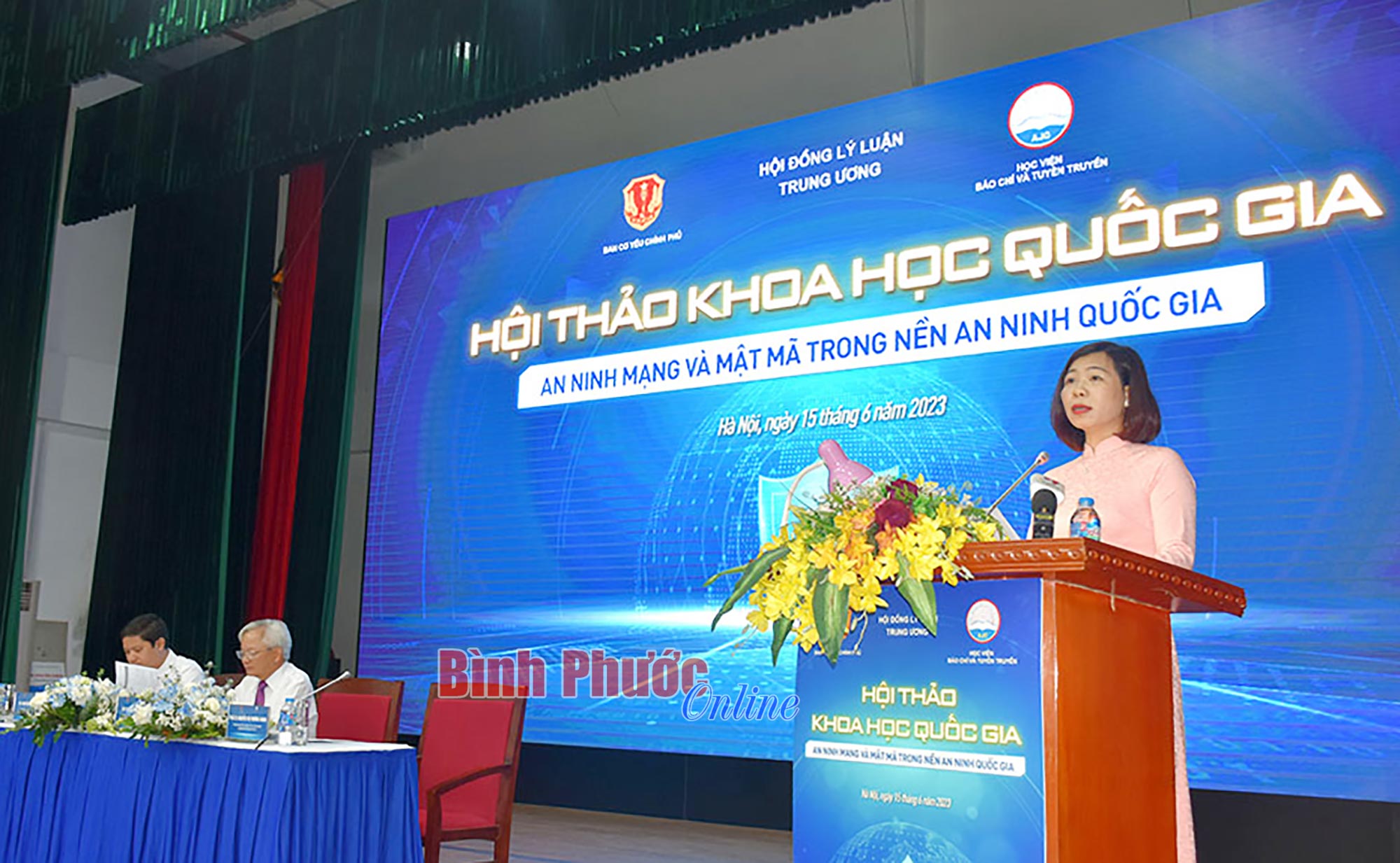Phát biểu đề dẫn Hội thảo, PGS,TS. Nguyễn Thị Trường Giang, Phó Giám đốc Học viện Báo chí và Tuyên truyền nhấn mạnh: Thời gian qua, tình hình an toàn, an ninh mạng tiếp tục diễn biến phức tạp, khó lường. Năm 2022, Bộ Công an đã ghi nhận, phân tích gần 8 triệu cảnh báo, dấu hiệu hoạt động tấn công mạng. Hoạt động gián điệp mạng, phá hoại của các thế lực thù địch ngày càng phức tạp, gây hậu quả nghiêm trọng về chủ quyền, an ninh, chính trị, đối ngoại, kinh tế, xã hội. Hoạt động tấn công mạng vào hệ thống thông tin trọng yếu của an ninh quốc gia nhằm phá hoại cơ sở dữ liệu, gây gián đoạn hoặc chiếm quyền điều khiển diễn ra thường xuyên hơn. Vấn đề an ninh mạng đang đòi hỏi phải tiếp tục được nhận diện, luận giải, phân tích những điểm mới về mặt lý luận và thực tiễn, tìm kiếm những phương châm, kế sách, giải pháp từ góc độ mật mã, góc độ quản trị để phòng ngừa, ứng phó, giải quyết có hiệu quả các mối đe dọa an ninh phi truyền thống, trọng tâm là an ninh mạng trong nền an ninh quốc gia phù hợp với bối cảnh mới, điều kiện mới.