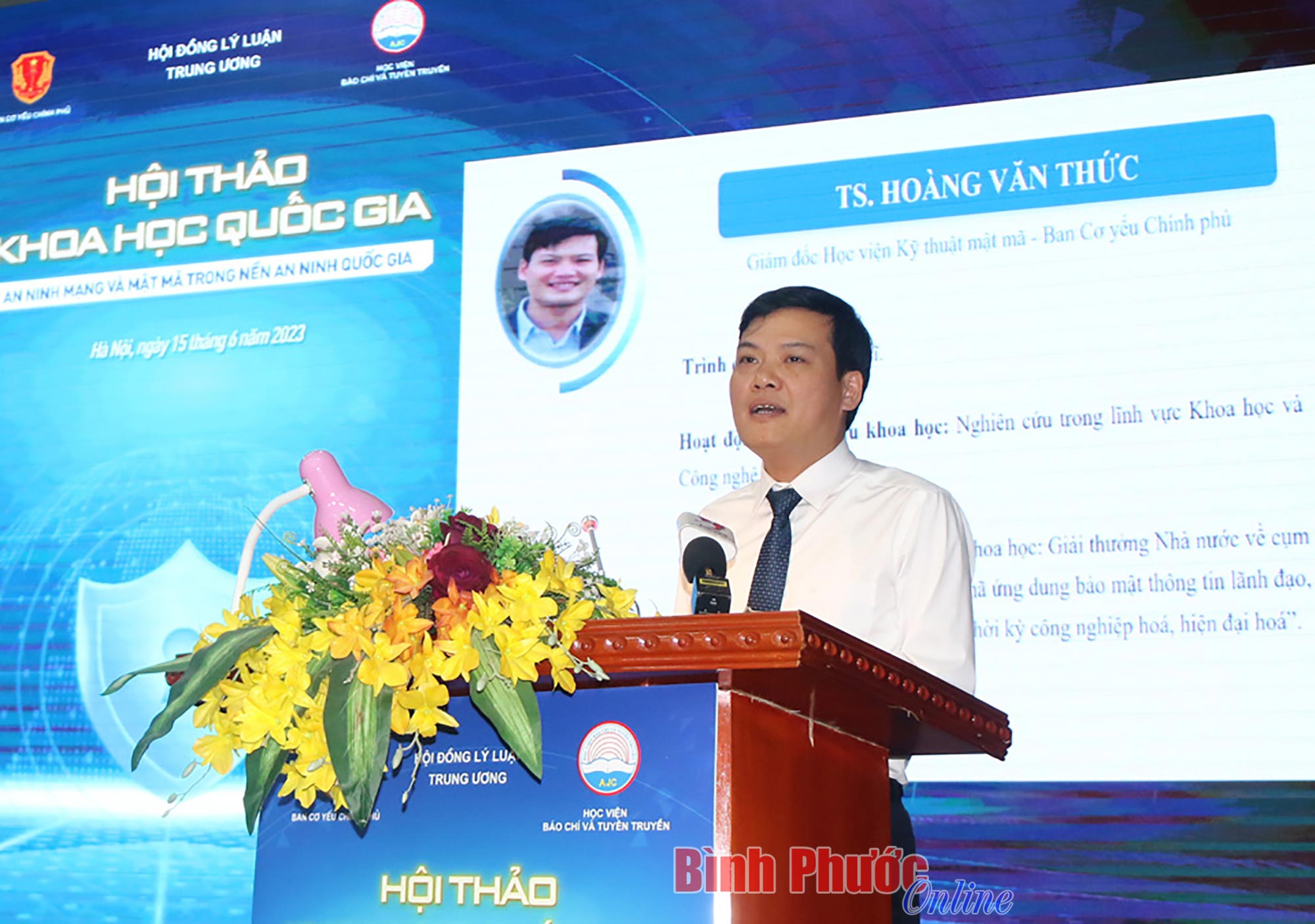 TS. Hoàng Văn Thức, Giám đốc Học viện Kỹ thuật mật mã tham luận tại hội thảo